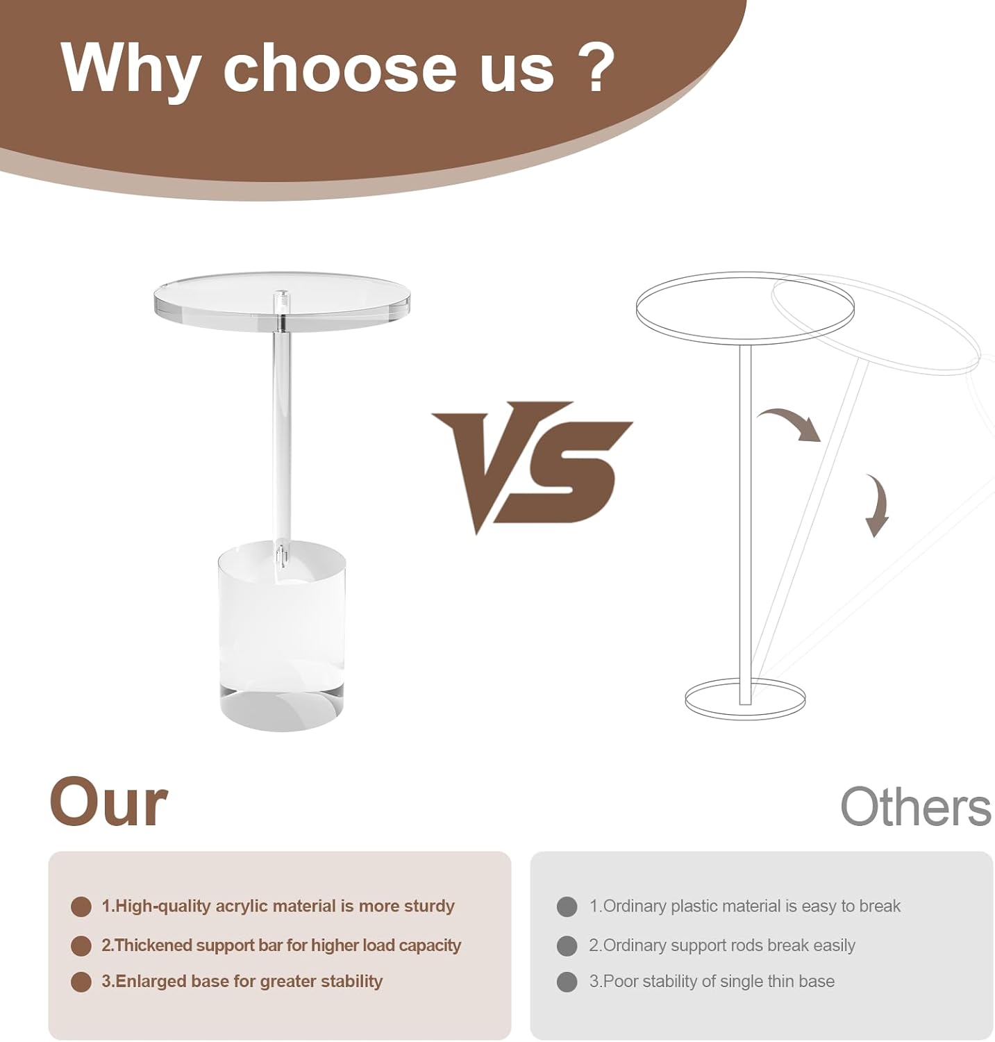 - ăHigh QualityăCrafted from premium acrylic, this acrylic side table resists scratches, drops, and discoloration. Its high transparency, glossy finish, and easy-clean surface ensure lasting clarity and durability.