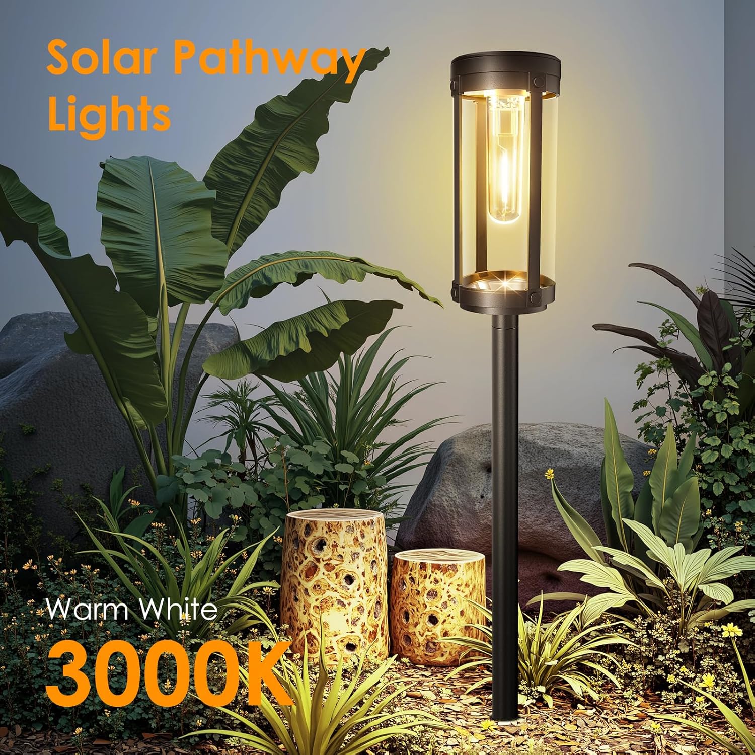 - Unique & Elegant Design: Compact Size for women easily hand-held. The solar lights outdoor waterproof feature warm white tungsten filament bulbs placed within high transparency, thicker lampshades. Long window for light - simple design, makes our solar yard lights brighter and more durable. Flexible height- decent quality is great for a path border or background. These walkway solar lights for outside can project unique light and shadow, creating a romantic and warm atmosphere for your home