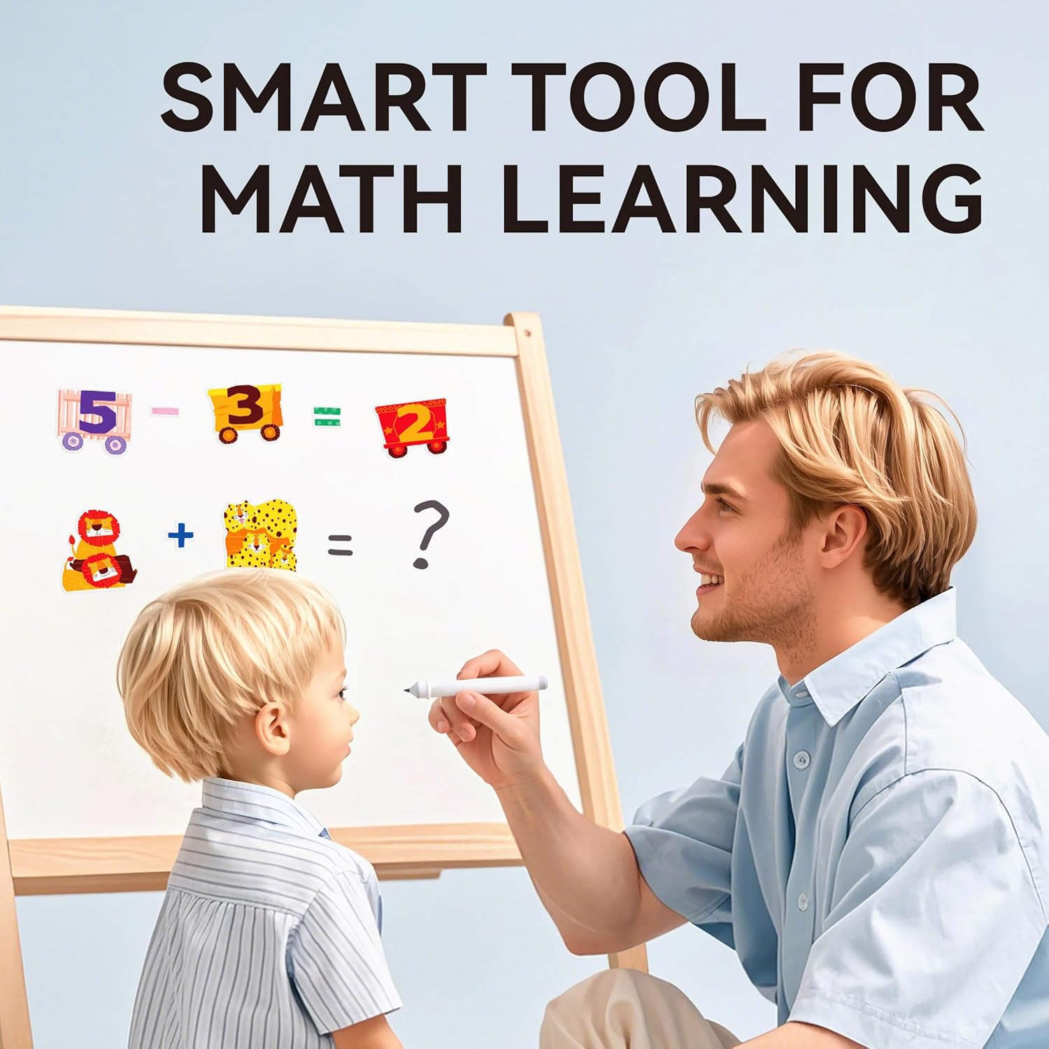 - LEARN NUMBERS 1-10 & BASIC MATH: Each 12"x8" sheet includes 25 stickers (2-5" each) features with animal train cars, numbers and math symbols (+, -, Ă—, Ă·, =) to teach counting, sorting, and simple equations.