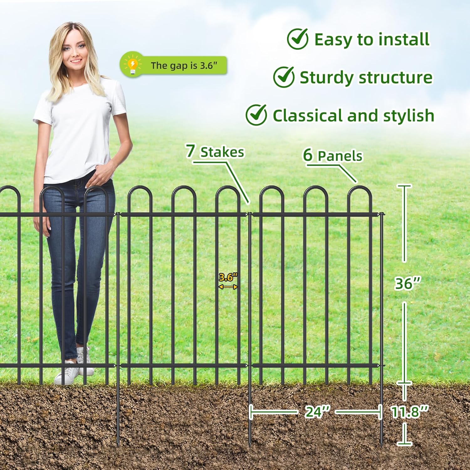 Metal Garden Fence 36 in H x 12 ft L, No dig Garden Border Yard Fencing, Dog Fence Outdoor Temporary Animal Barrier for Flower Bed Lawn and Patio, 6 Panels + 7 Stakes Black