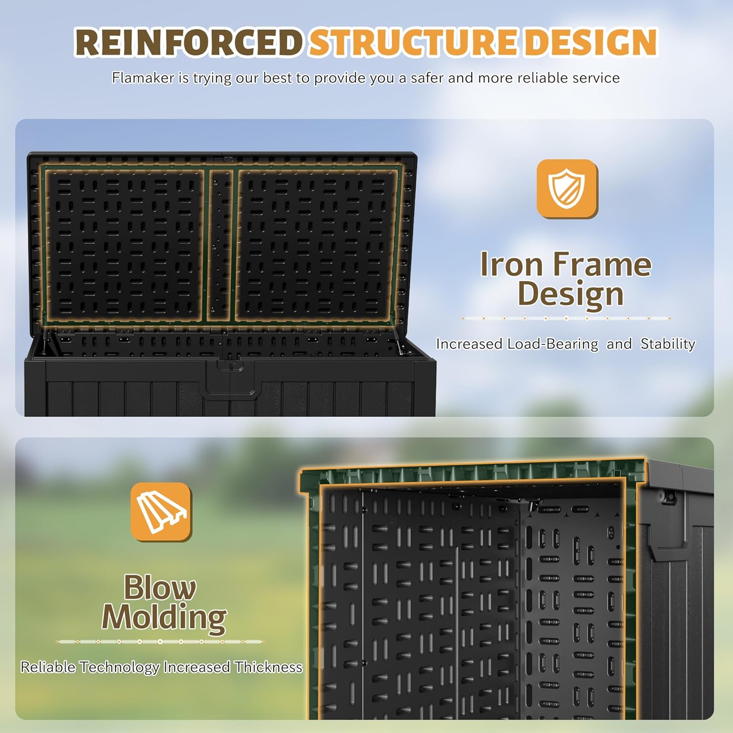 - [As a Seat] Flamakerโs large outdoor storage deck box, not only guarantees the storage capacity, but can be used as a seat, which can be used by up to 2 people