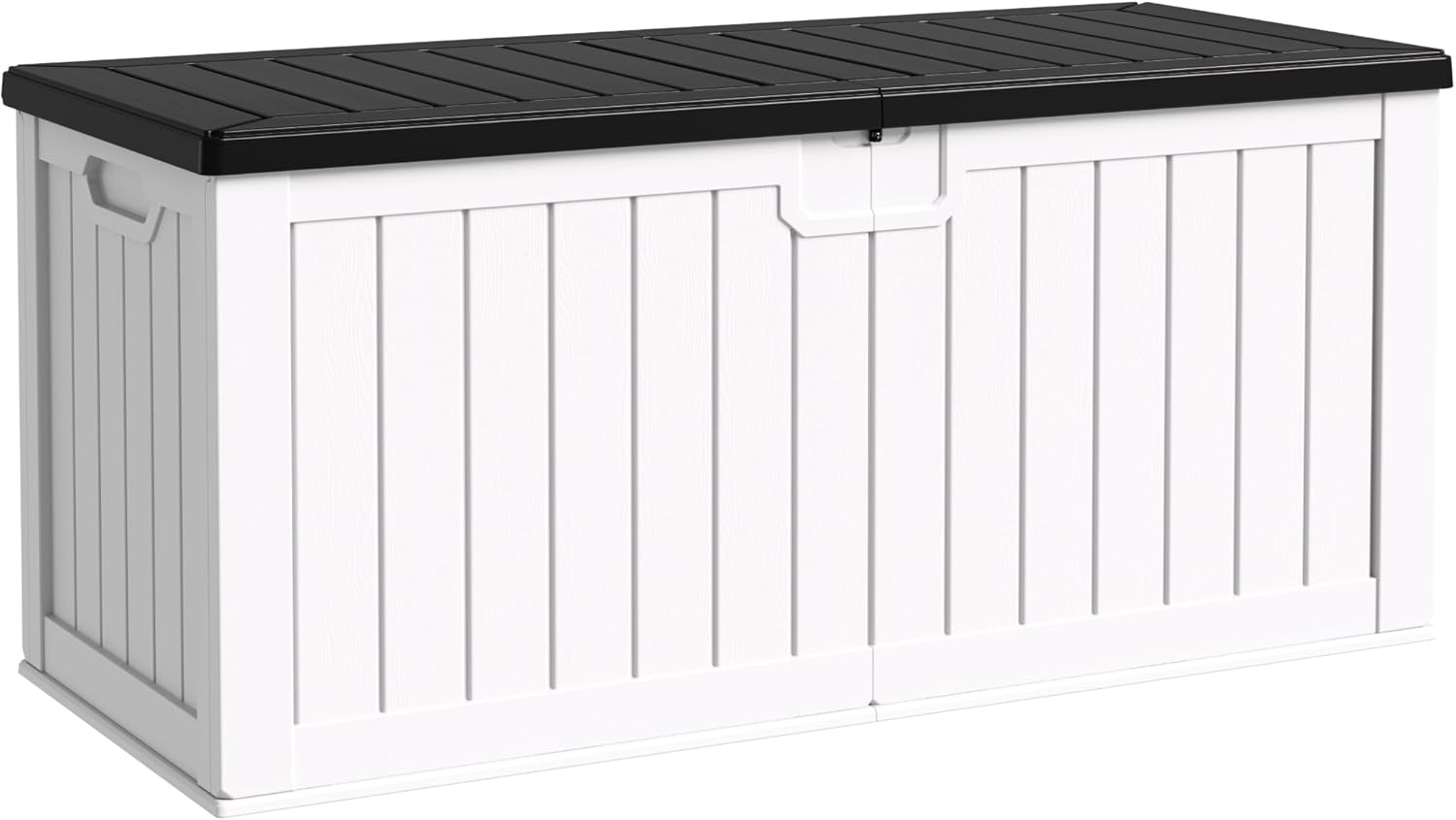 Flamaker Resin Deck Box 250 Gallon, Waterproof Imitation-Wood Lockable Storage Box with Separator Plate Outdoor Indoor, Garden, Patio Furniture for Tools&Pool Accessories (White with Black Cover)