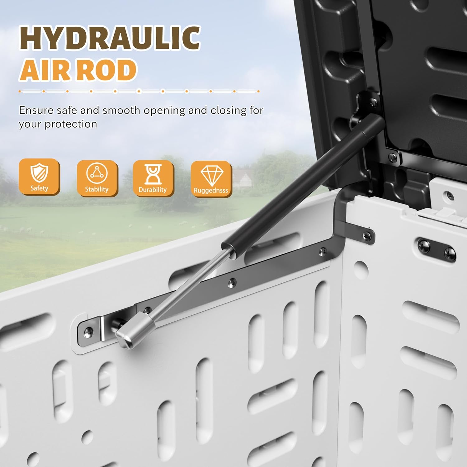 - [Safety Design]We choose hydraulic rods to connect the cover and the box, which buffers at the time of opening and closing, greatly ensuring the safety. In addition, the design of locker is a good helper for your safety of property