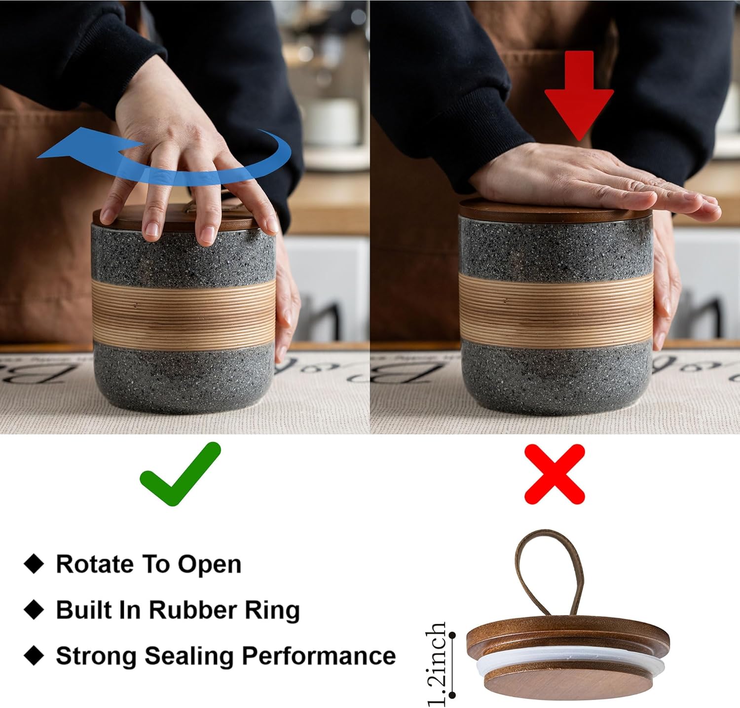 - Rope Cover Design: Each food storage container is equipped with a wooden lid, which has strong sealing and effectively isolates air, moisture, and odors, keeping food dry and fresh, and extending the shelf life of food. There is a unique rope design on the lid, which is easy to open without losing its beauty