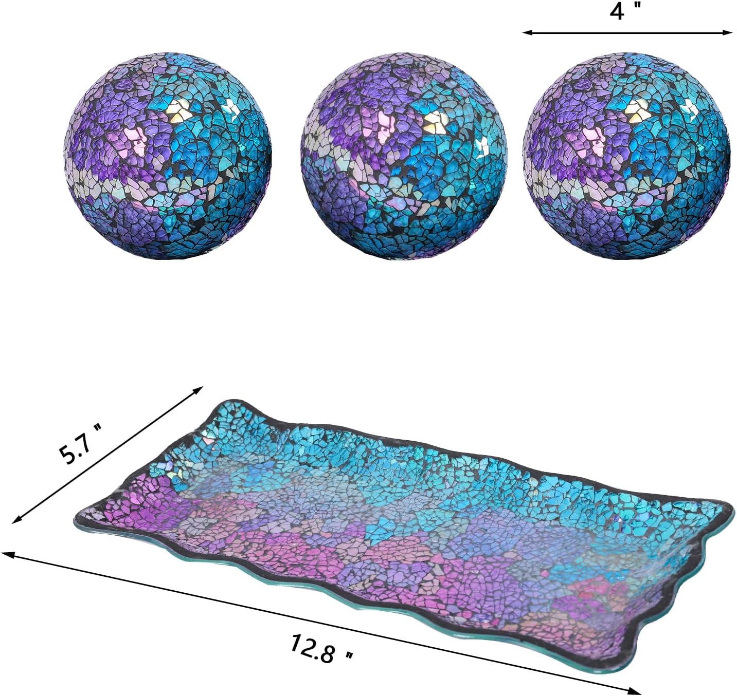 - Friendly Customer Service: This package includes 3 mosaic glass orbs and 1 decorative bowl, each measuring 4 inches in diameter. Please confirm the product size before purchase and feel free to contact us via email for any inquiries