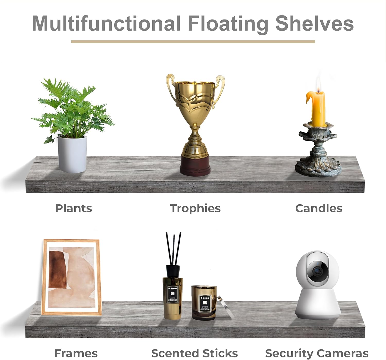 - Versatile & Functional Floating Wall Shelves: Floating shelves can also be used to hold beauty or hair products in the bathroom or bedroom. Place the wall shelves under a mirror in the entryway or exhibit family photos gallery style in a long hallway. Use as bathroom shelf, book shelf for wall, wall shelves for bedroom, above toilet shelf, kitchen shelves, shelves for room wall, floating shelves bathroom, living room wall shelf, display shelf and more