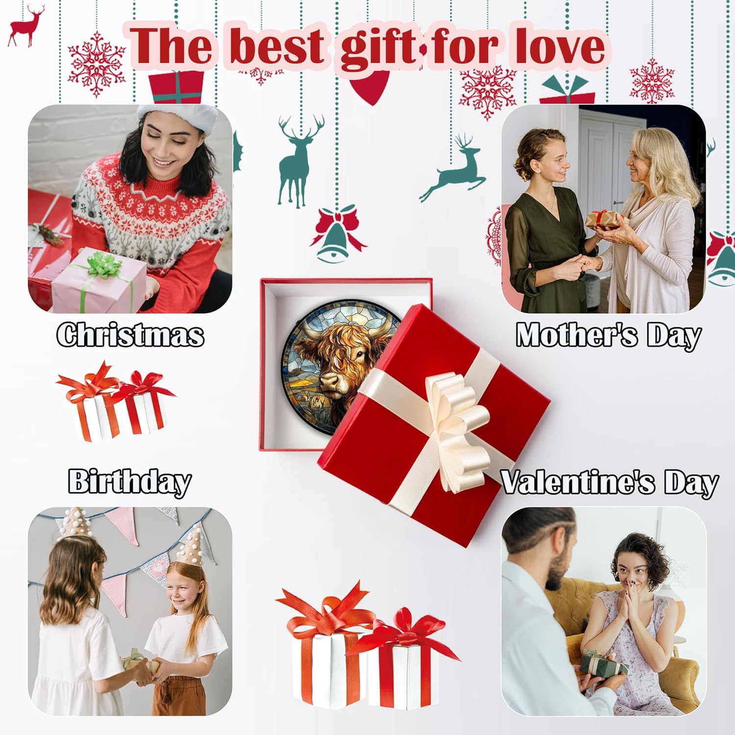Stained Glass Window Hanging - Funny Cow Flower Suncatcher Ready to Hang Window Doors Home Decoration and Christmas, Mother's Day Birthday Gifts for Women, Men, and Mom 11.8x11.8 in