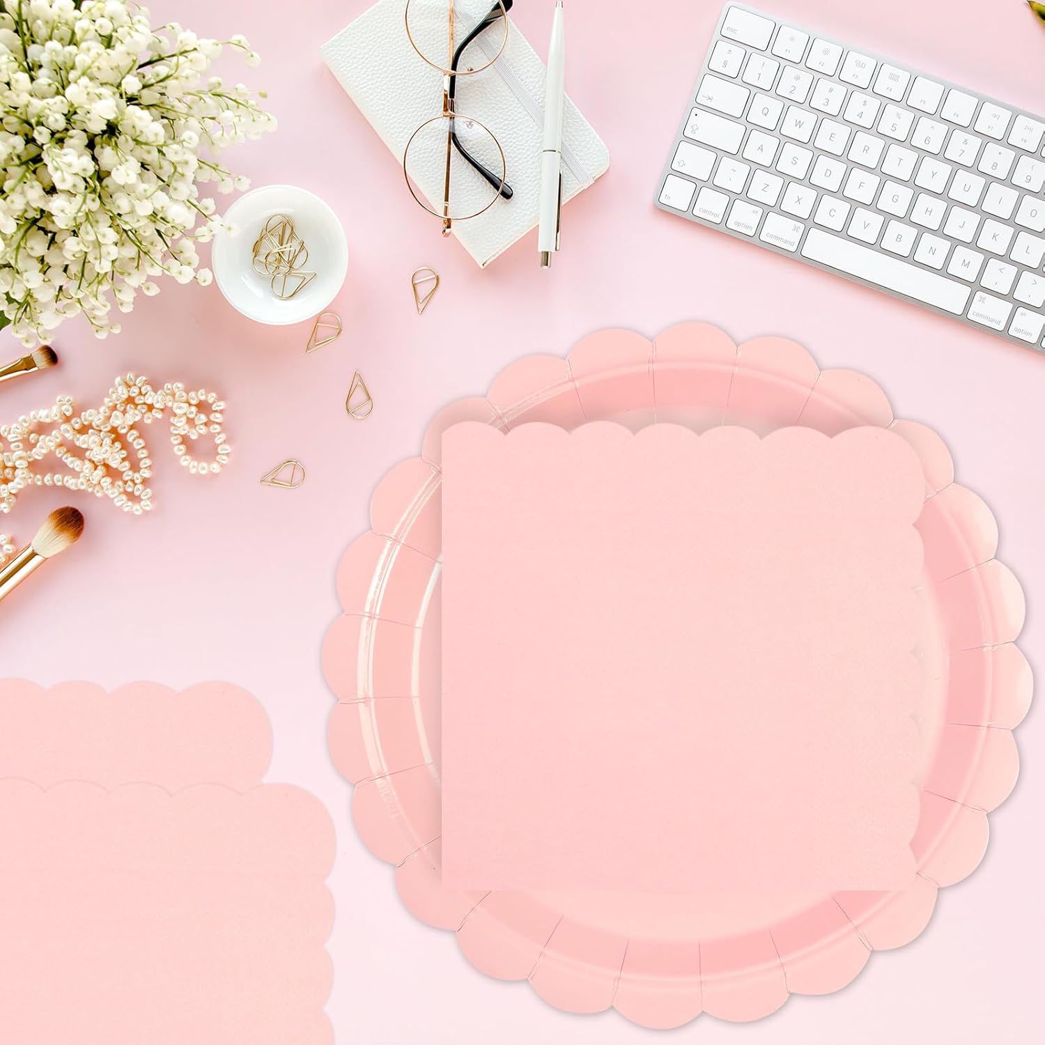 - Complete Set: Enjoy a hassle-free party with our 50 pcs pink scalloped paper plates party supplies set that includes9 inch 20 pcs dessert plates & 20 pcs napkins.Perfect for any party or everyday use, enough to decorate a fabulous and unique party!