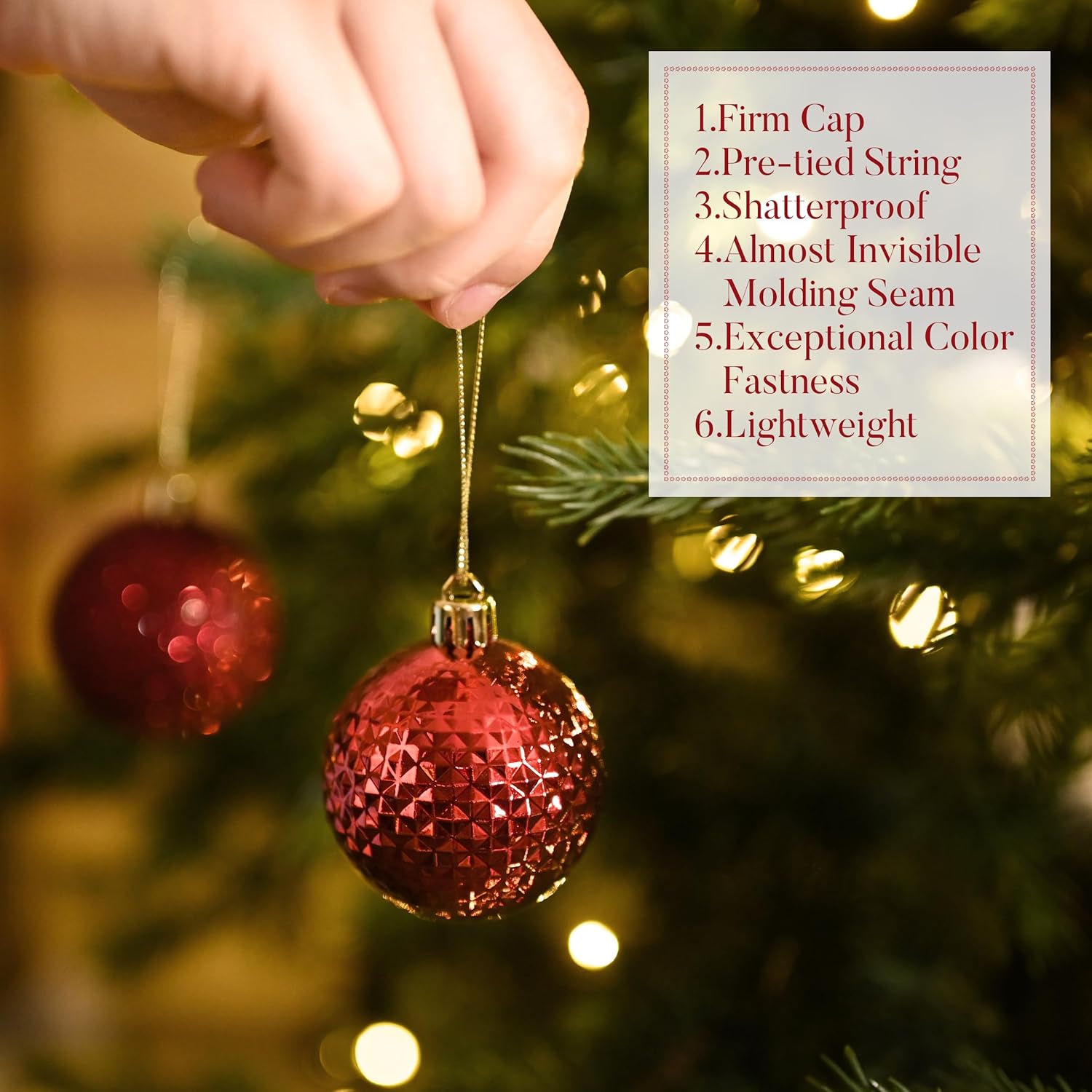 - 【Package and Size】This ornament ball set include 50pcs Christmas ornaments measuring 2 inches in diameter, featuring seamless connections for a polished look