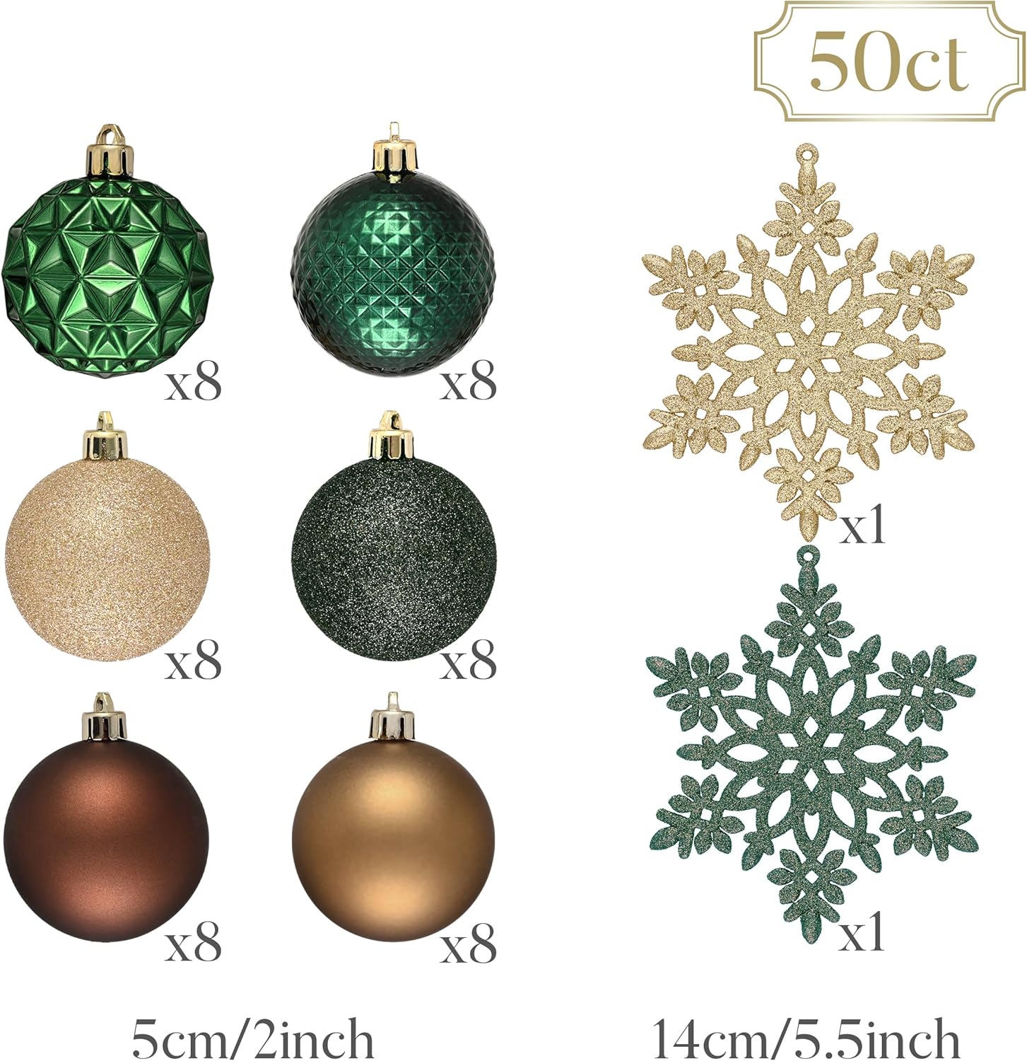 • 【Package and Size】This ornament ball set include 50pcs Christmas ornaments measuring 2 inches in diameter, featuring seamless connections for a polished look