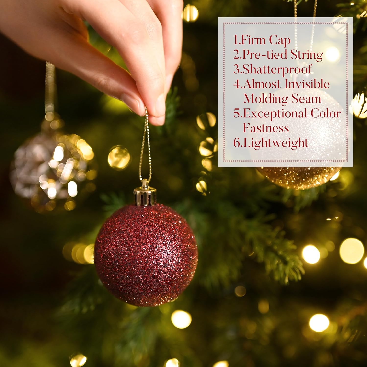- 【Shatterproof】These Christmas ornament are made of sufficient thickness plastic to prevent breakage. The ornament set remains intact even after falling from 2 meters high onto a hard floor. It is suitable for family