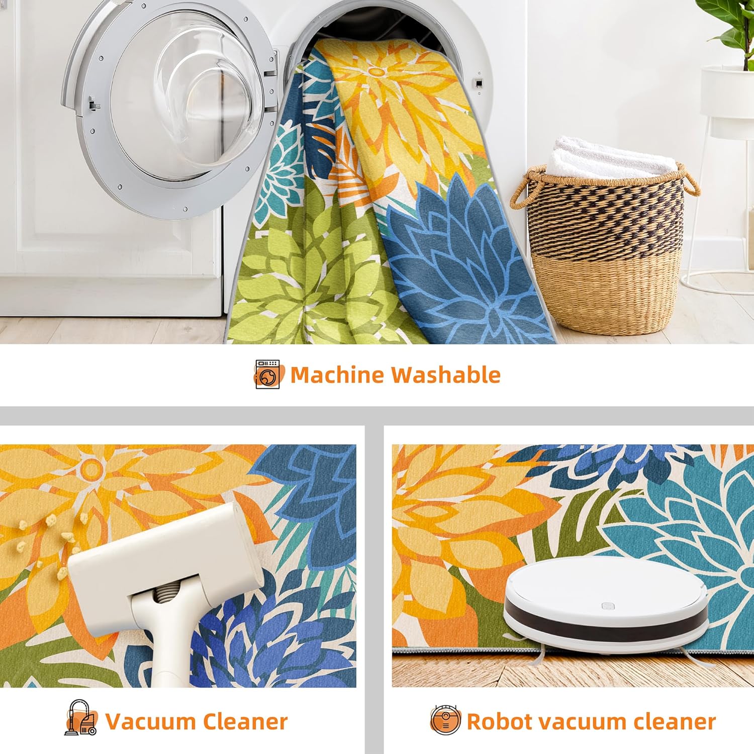 - Floral Pattern Design: Brighten up your outdoor space with our stunning floral pattern washable rug, perfect for patios, decks, or gardens, adding a touch of elegance and charm to any setting.