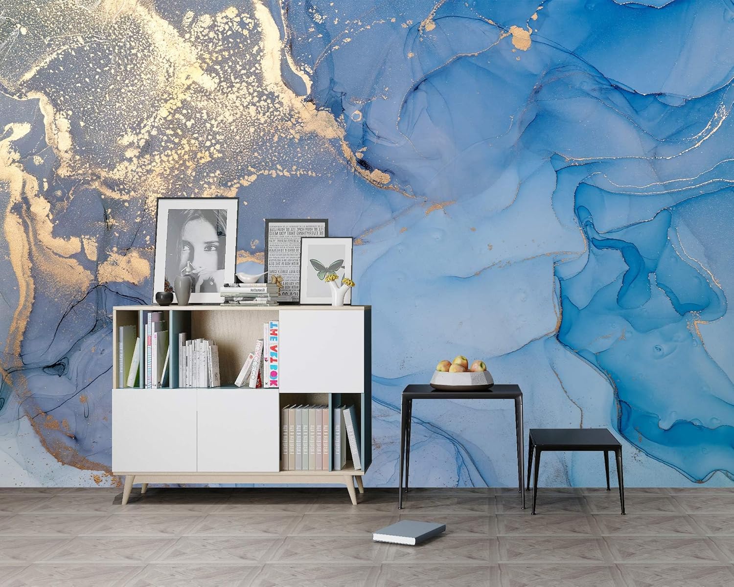 Blue and Gold Marble Wallpaper Abstract Art Background Wall Mural (Not Peel and Stick)