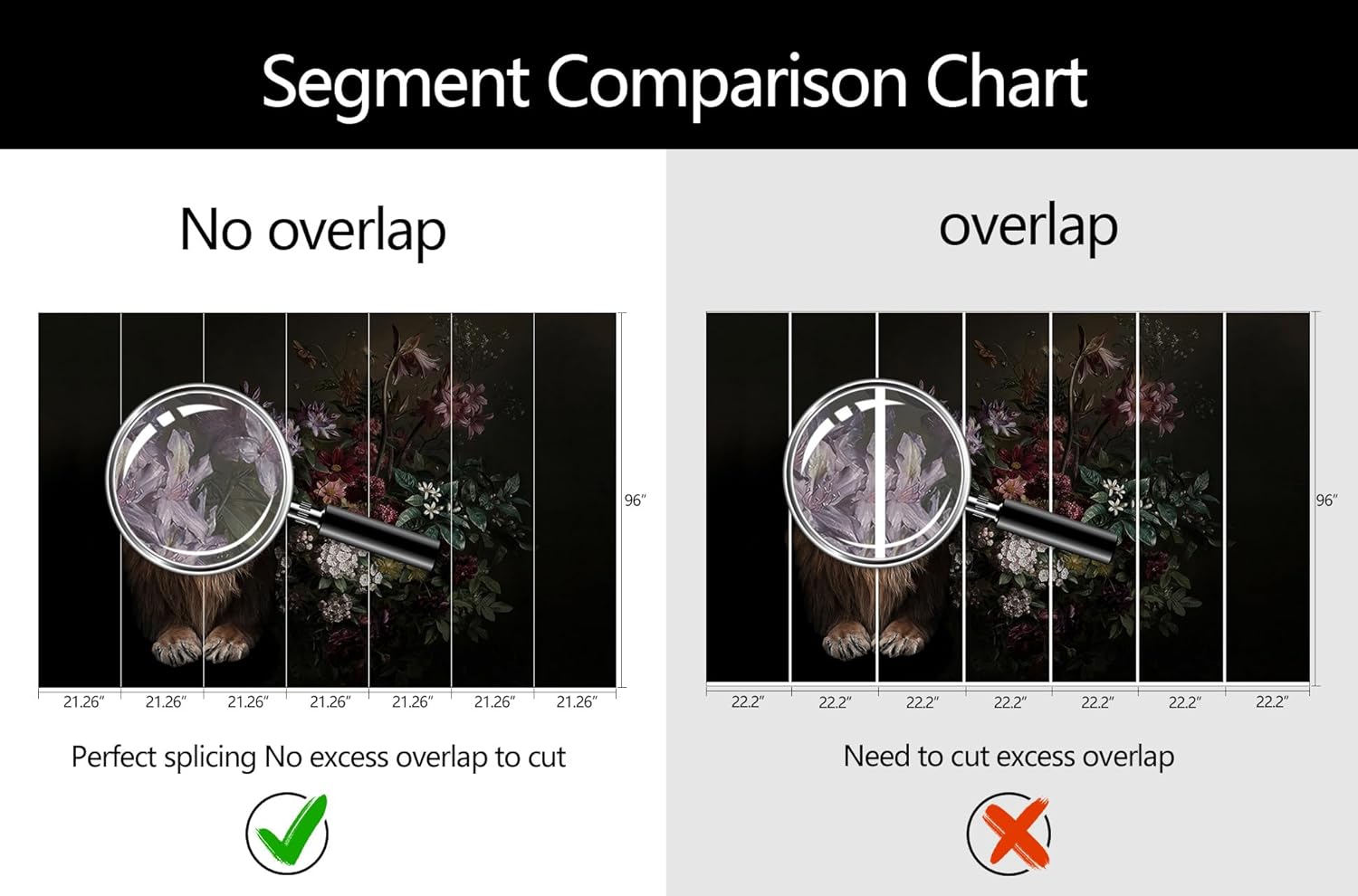 - Mural Size: The total size of this mural wallpaper is 149" x 96" / 378CM x 244CM (W x H), cut into 7 pieces, each measuring 21.26" x 96", for easy installation.