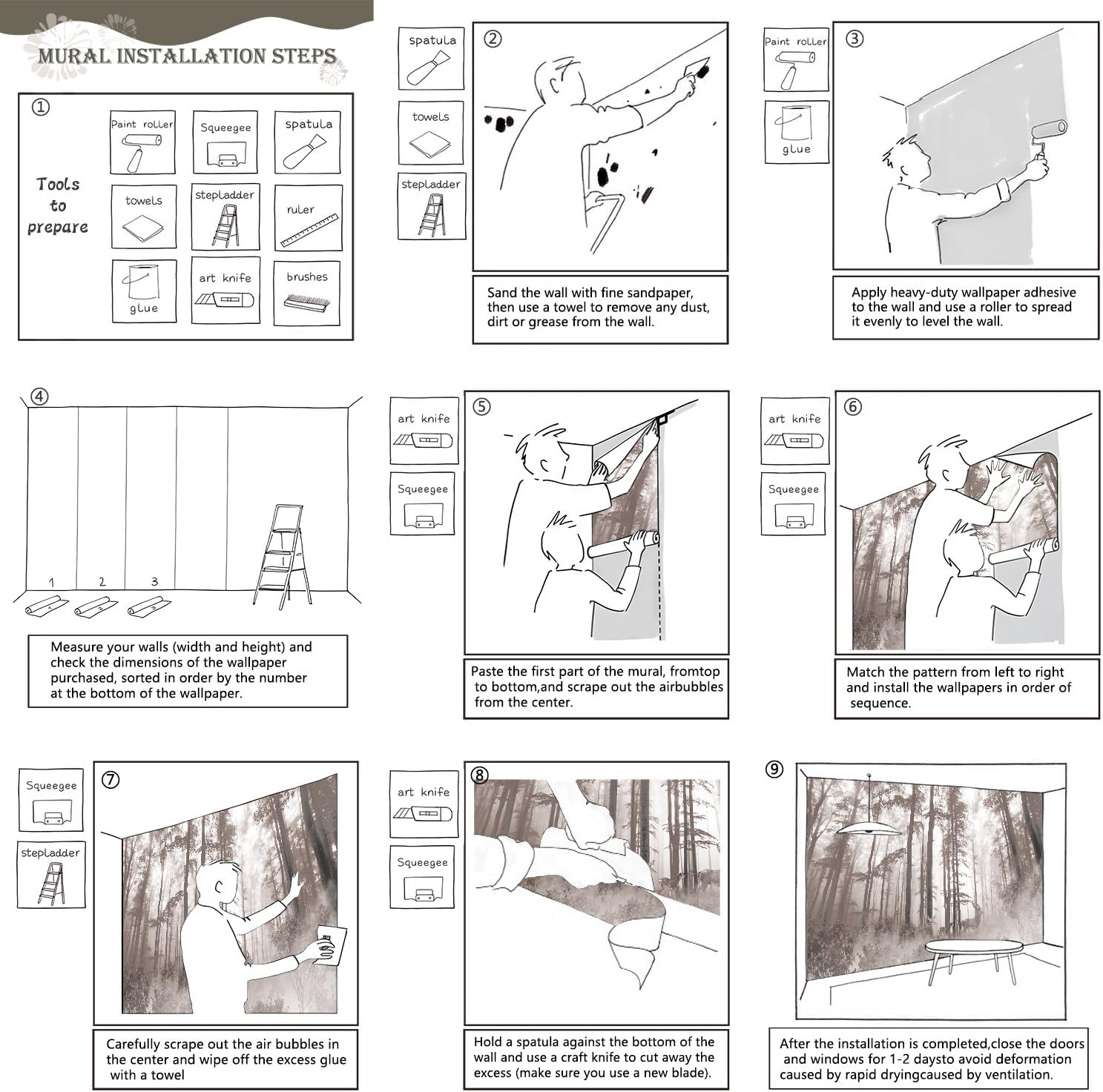 - Tips: Mural can not be peeled and pasted, you need to buy a heavy duty wallpaper glue