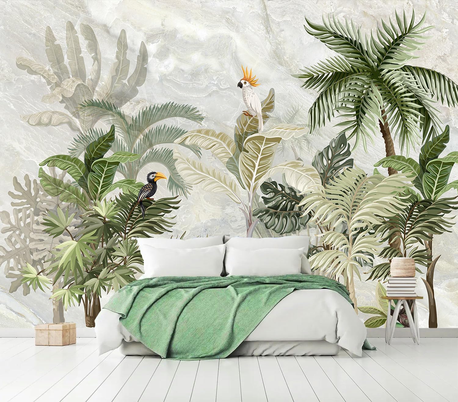 AFZEVEB-Green Forest Nursery Wallpaper Tropical Parrots Wall murals for Kids Room 159"x107" (Not Peel and Stick)