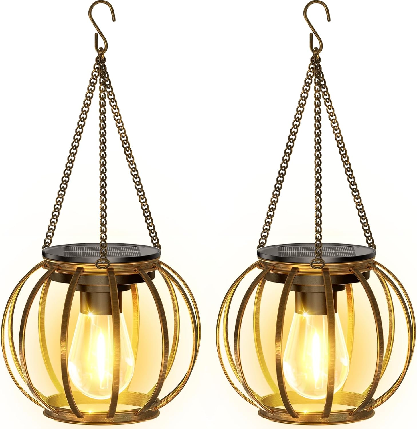- 【Upgraded Filament LED & High-capacity Battery】Featuring a 3.7V/600mAh rechargeable battery, our hanging solar lights for outside guarantees long-term, safe illumination at night. This hanging solar lantern can shine for up to 15 hours, requiring just 6-8 hours of charging. Enhanced by upgraded LED tungsten bulbs, solar hanging lights outdoor delivers a bright lighting effect while conserving energy, ensuring efficiency and prolonged brightness for a lasting outdoor lighting solution