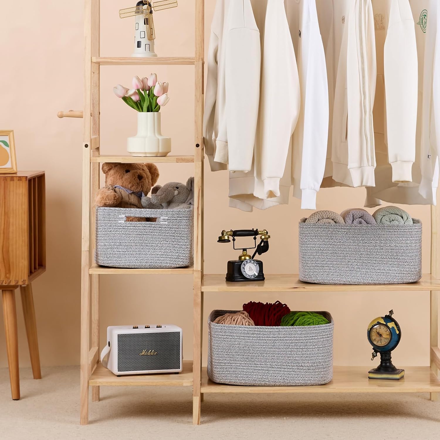 - [ Stylish Design ]: With a modern minimalist design, our woven rope baskets are a chic alternative to traditional rattan. They’re perfect for closets, changing table organizer, and cube shelves, adding warmth and texture to any room while tackling home clutter