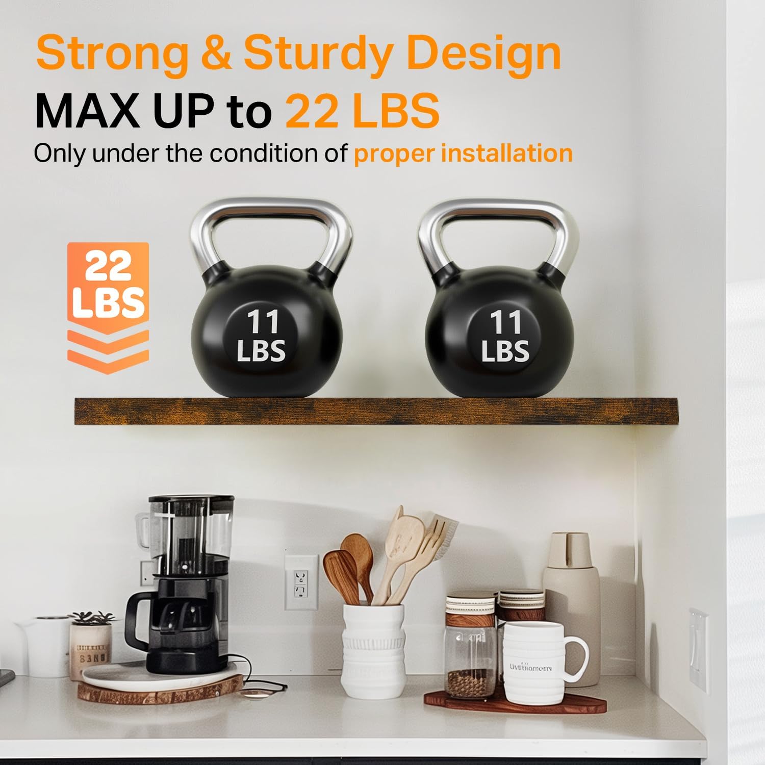 BAYKA Floating Shelves Set of 2, 22.5" Rustic Wood Wall Mounted Shelves for Bedroom, Living Room, Kitchen & Office, Hanging Display Shelf with 22 lbs Capacity (Rustic Brown)