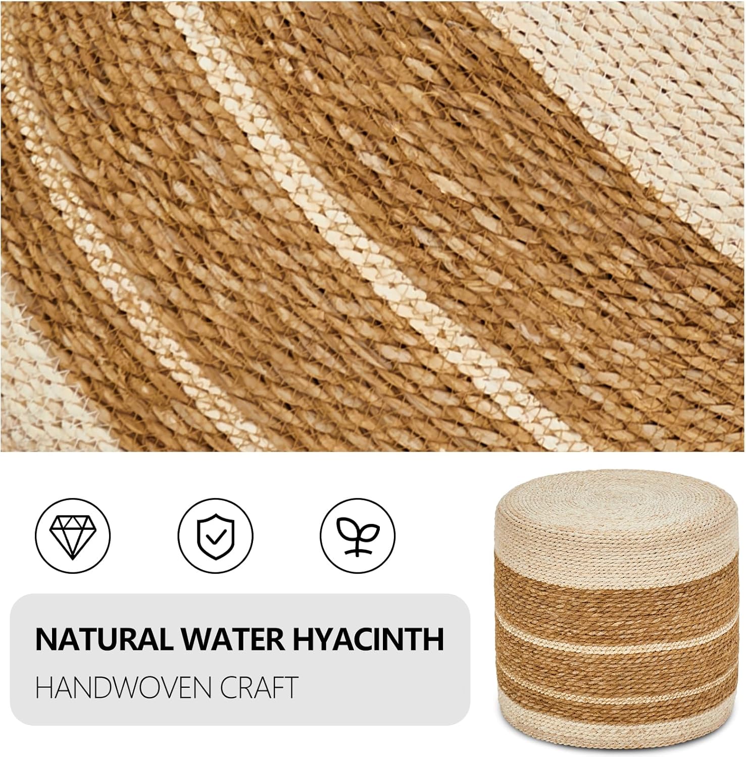 Cplxroc Ottoman Poof, Natural Seagrass Poufs, Hand Weave Round Footstool, Pouffe Accent Chair, Home Decorative Seat, Boho Deco Floor Chair for Living Room, Bedroom (18inch 68LG)