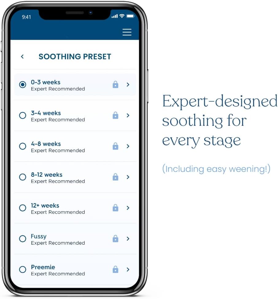 - FULLY CUSTOMIZABLE OR EXPERT-GUIDED MODES: Choose from hundreds of soothing combinations or select expert-designed programs tailored for newborn sleep, colic relief, and weaning stages.
