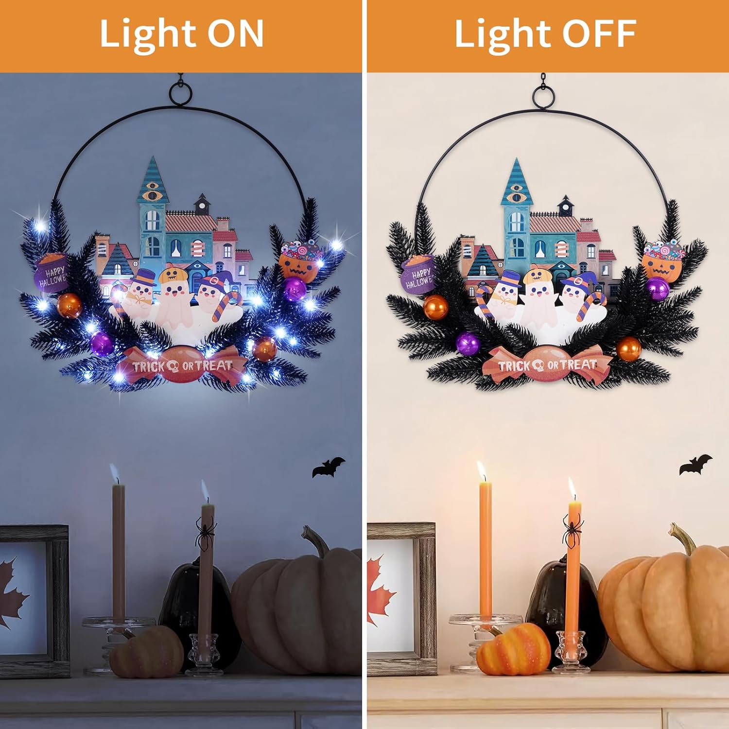 - Perfect Choice: This Halloween lighted wreath decorations that perfectly decorates front doors, walls, fireplaces and Windows to create a joyous and festive atmosphere is a great gift for friends and family who love Halloween, as well as adding a festive atmosphere to the home