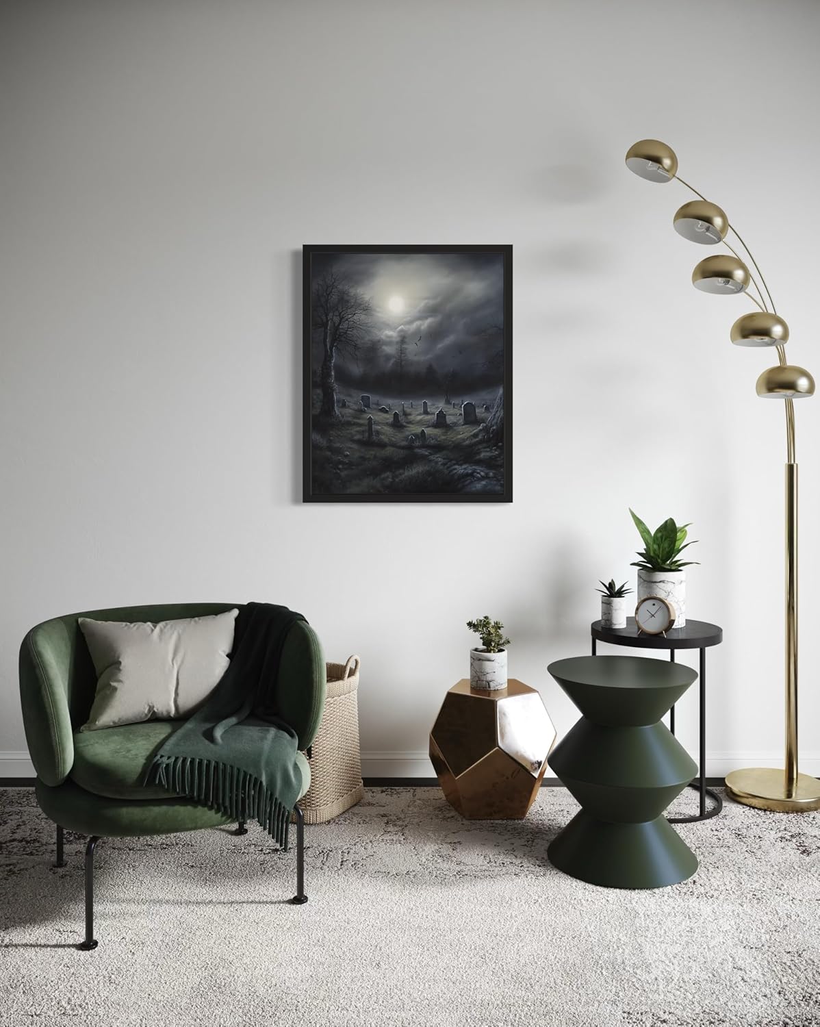 Gothic Graveyard Poster Art Print, Halloween Scary Vintage Wall Art Academia Spooky Painting Decoration for Horror Prints, Posters Bedroom Decor 89 (Gothic Graveyard, 8 x 10 inches, Unframed)