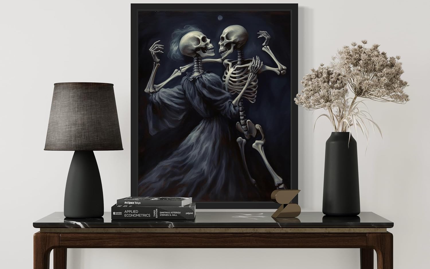 Dancing Skeleton Poster Art Print, Halloween Scary Vintage Wall Art Academia Spooky Painting Decoration for Horror Prints, Gothic Posters Bedroom Decor 89 (Dancing Skeleton, 8 x 10 inches, Black Frame)