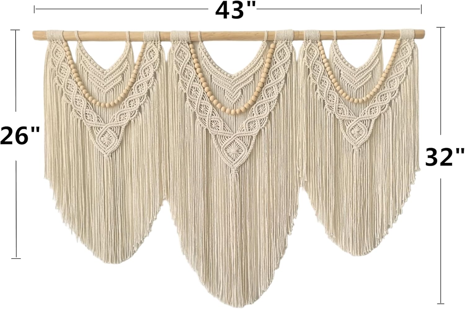 - Easy to assemble: A tapestry of 43''x32'' inches and 3 pieces of spliced wooden Dowel,Three splicing wooden rod are included on the package, so it is easy to splice the three wooden rod screw together to become 1 large macrame piece.