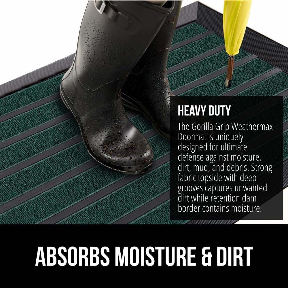 - THE ORIGINAL WEATHERMAX ALL SEASON DOORMAT: Gorilla Grip's Original WeatherMax doormat is built tough with a heavy duty, yet soft and flexible construction; deep grooves, beveled rubber border and retention dam help capture dirt, debris and moisture
