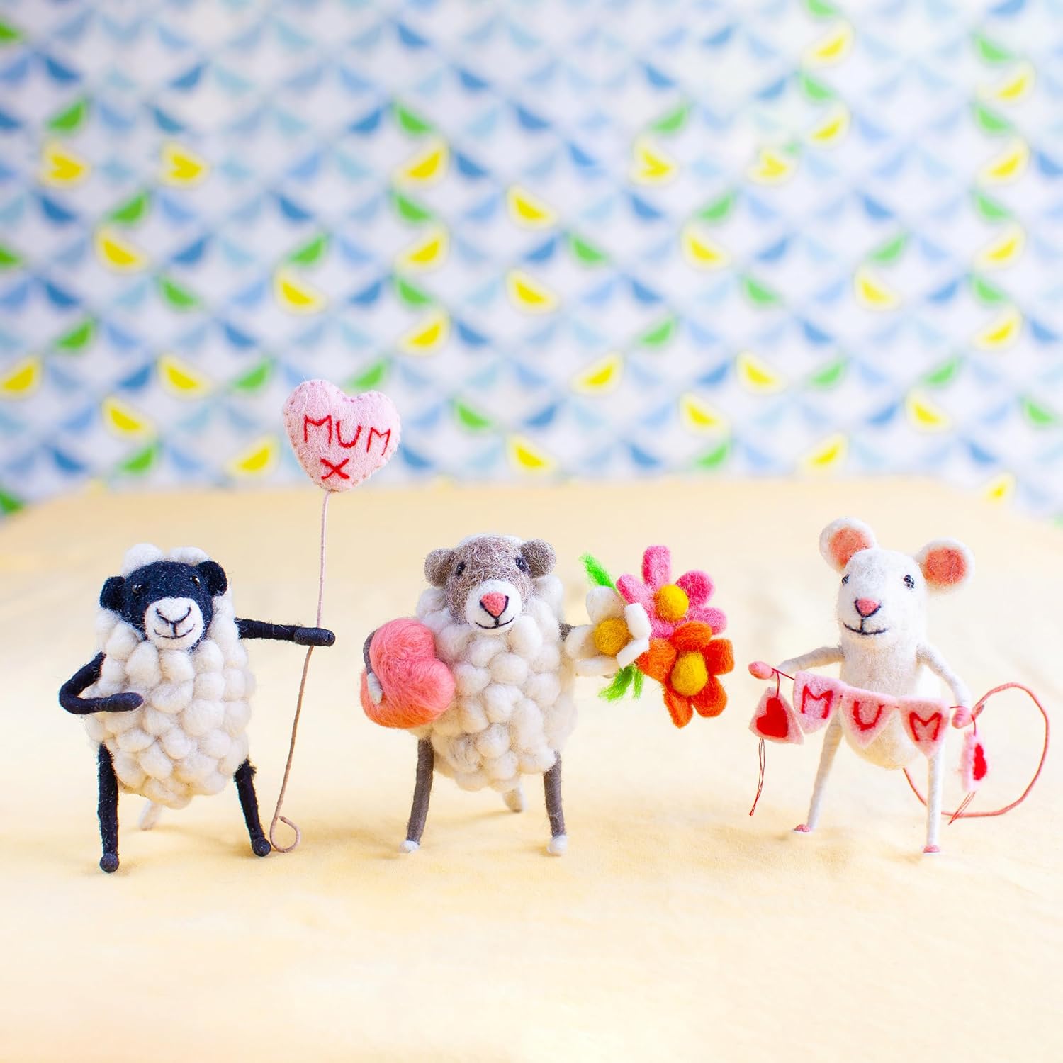 - Hand Felted Mom Bunting Mouse: Make your mum feel loved this Mother's Day. Why not give her a gorgeous little mouse holding a specially adorned mum bunting with hearts...how adorable! This little mouse will live on her mantlepiece for years to come as a reminder of your love! A lifelike and character-filled artisan masterpiece, approximately 10 cm in height. Each mouse has a character of its own and is delivered in a free little home gift box, making it a heartfelt keepsake for mom.