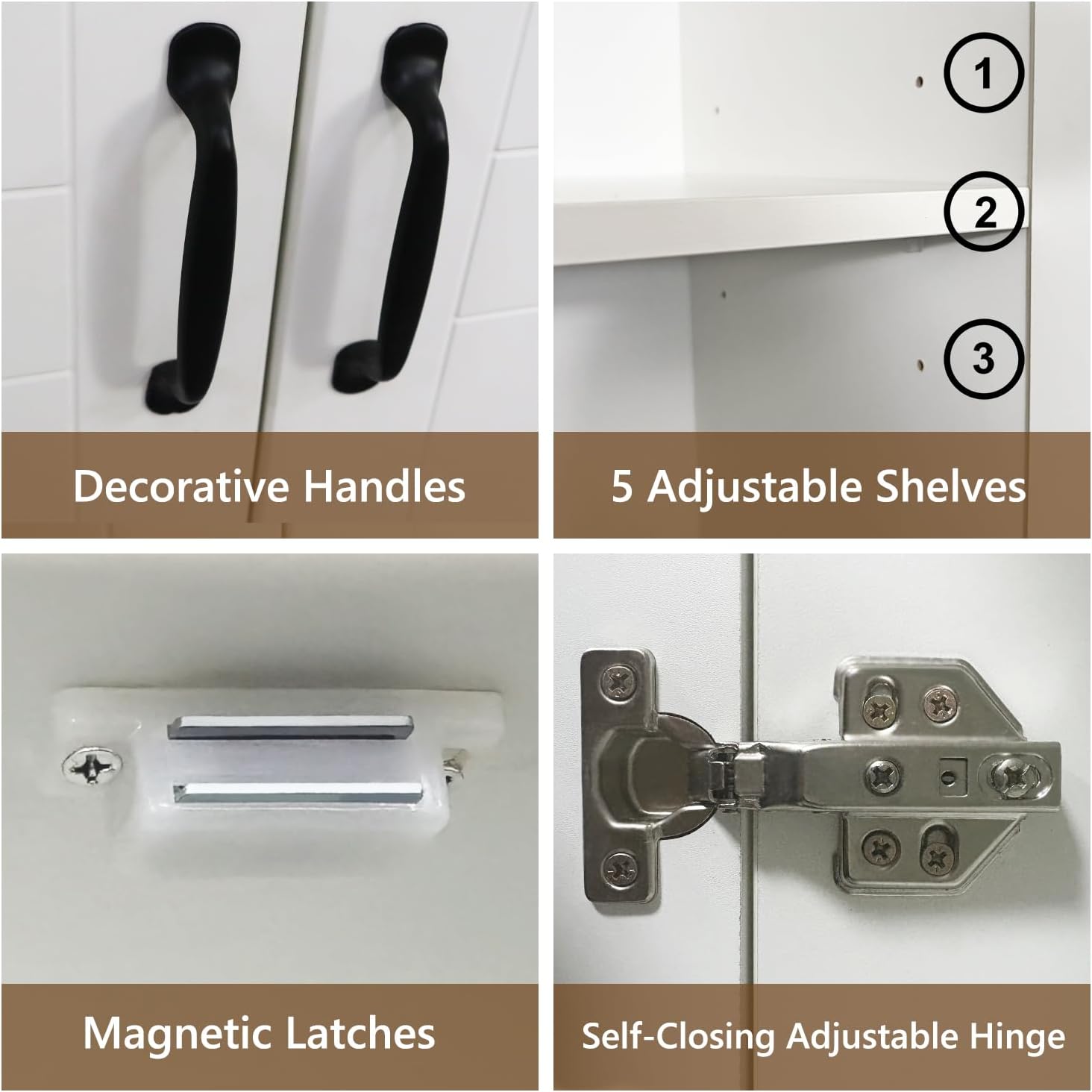 - Multifunctional Cabinet: Our 2 door wooden cabinet features a freestanding design, which you can use for a pantry cabinet, food cabinet, kitchen cabinet, kitchen cupboard, utility cabinet, laundry room cabinet, bathroom cabinet, bedroom wardrobe, bookcase, tool cabinet, file cabinet, appliance cabinet, etc. It will be your good choice for storage and organization