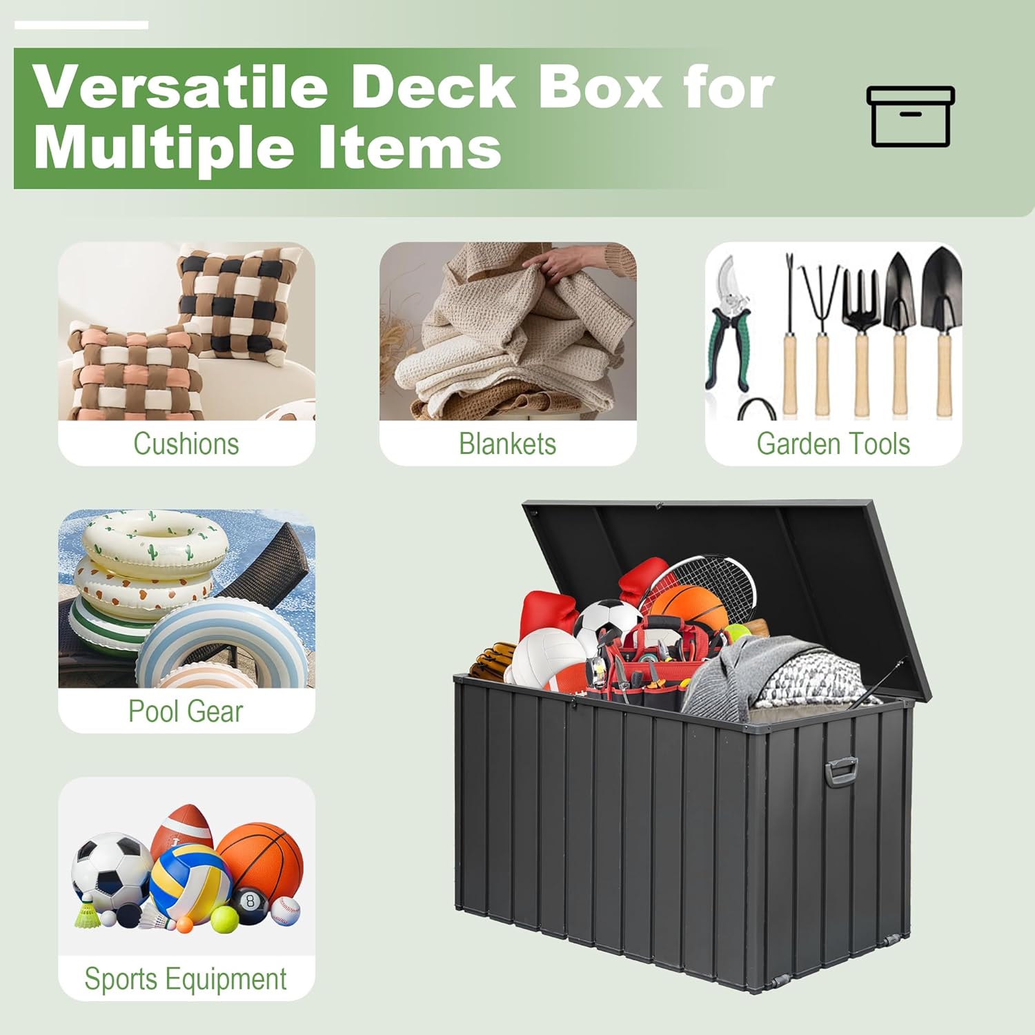 - Galvanized Steel Frame: Domi deck box is made of durable galvanized steel, offering waterproof and fade-resistant properties, while also effectively preventing damage from rodents and other animals.