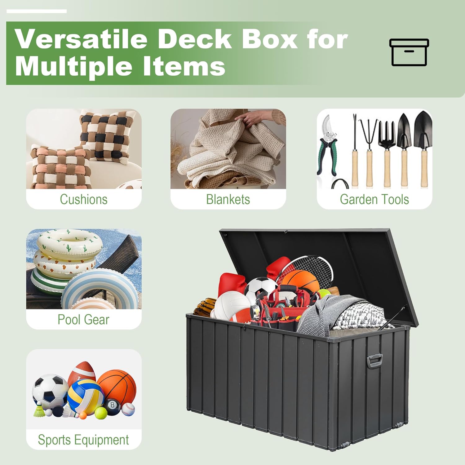 - Galvanized Steel Frame: Domi deck box is made of durable galvanized steel, offering waterproof and fade-resistant properties, while also effectively preventing damage from rodents and other animals.