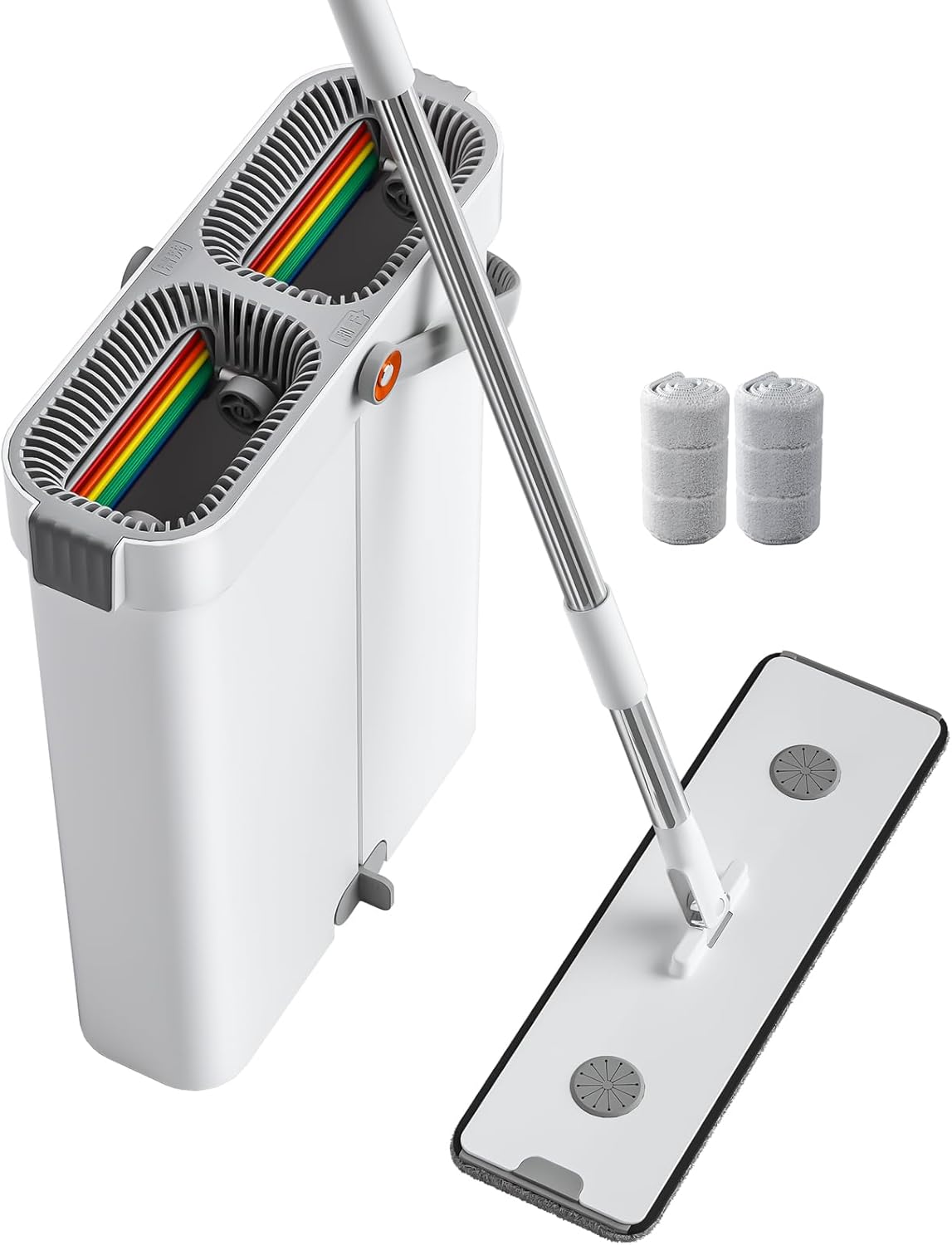 - [Wash&Dry] mop and bucket with wringer set, 2-bucket mop system, wash and dry, scratch dirt away in wash chamber, squeeze out of water in dry chamber, hands-free cleaning mop with bucket.