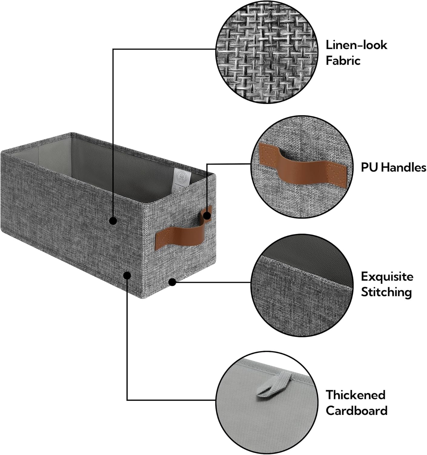 - Easy to Use with PU Handles: Features two PU leather handles that are securely stitched for comfortable grip. Easily pull out or carry the bin from shelves, closets, or tight spaces.