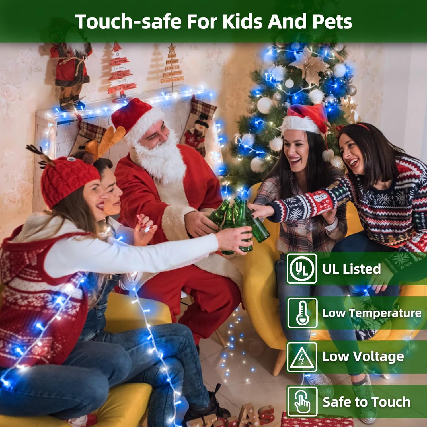 • Built for Families & Energy Savings: Many parents worry about kids or pets touching led string lights. That’s why our UL-certified low-voltage LEDs stay cool, even after hours of use. Safe for indoor trees, mantels, or kids’ bedrooms. Plus, the lights use 90% less energy than traditional bulbs—keeping your electric bill low while still giving you the brightest display in the neighborhood