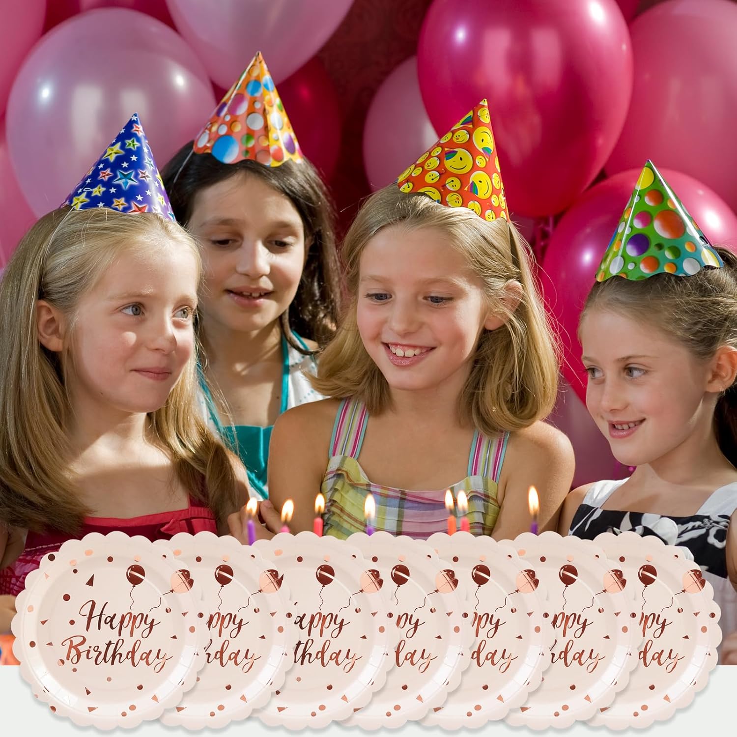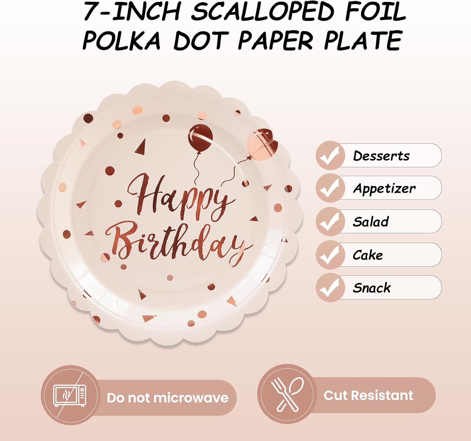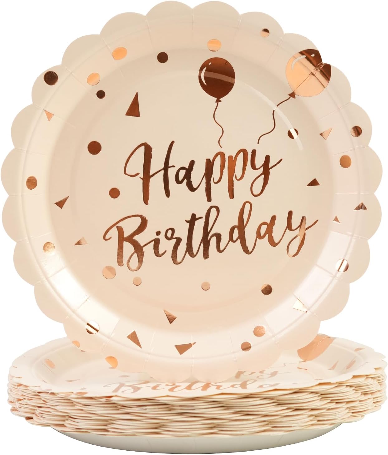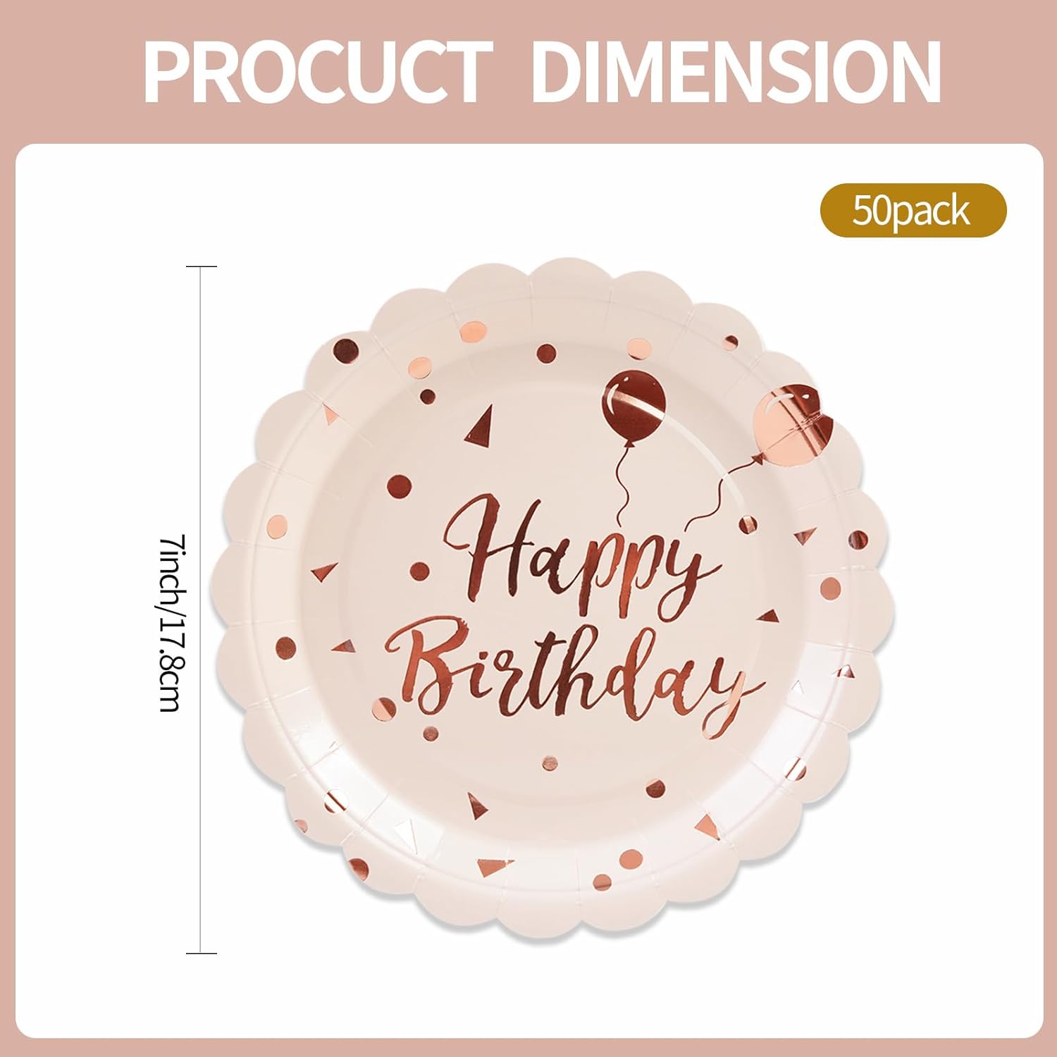 - 【EXQUISITE DESIGN】:Eye-catching gold foil stamping of 'Happy Birthday' in stylish fonts adorns these birthday dessert plates and the rising balloon signifies growing goodness. An elegant rose gold color specially designed for girls and ladies adds a touch of elegance and festivity, making your birthday party table instantly stand out.