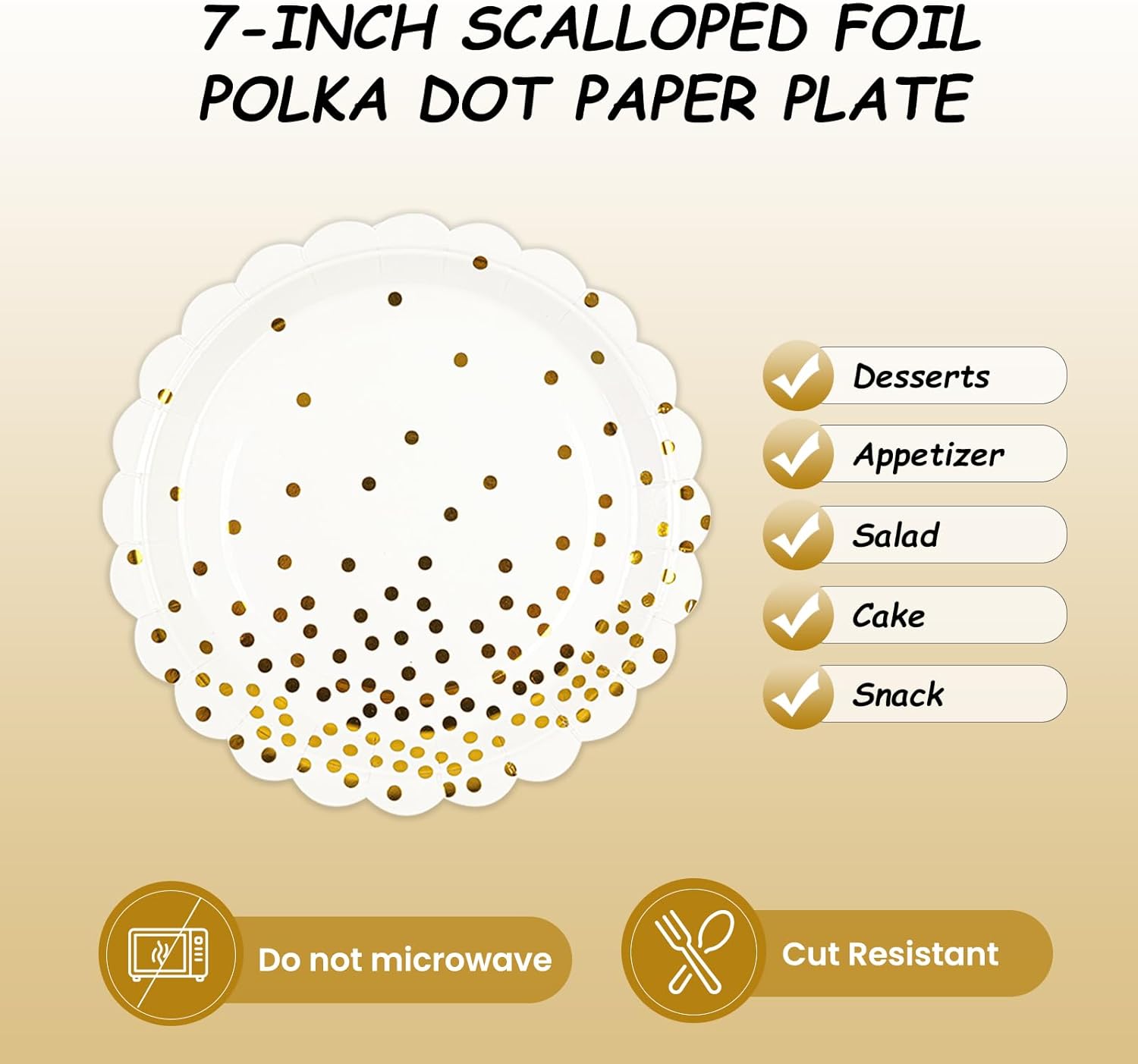 - 【CLASSIC PATTERN & VIBRANT COLOR】: Classic gold foil dot plates, various colours to choose from, find your favourite colour here to decorate your various events and parties! Add charm to your kitchen, dining room, table, dinner, picnic, party and any other gatherings.