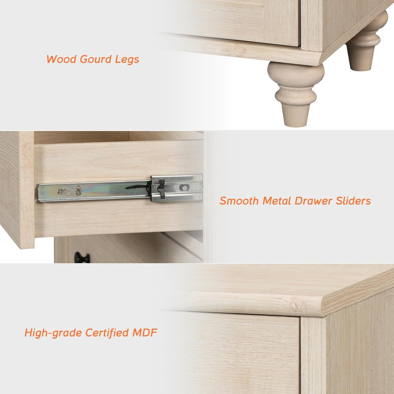 - 【Reliability&Humanized Design】 The dresser for bedroom with solid wood round gourd furniture legs add beauty and ensure the stability of the storage cabinet.And an additional anti-tipping kit is also included for added safety. Total Weight Capacity: 88 lbs.The distance between the bottom plate and the floor is large enough so that the robot vacuum cleaner can pass freely.