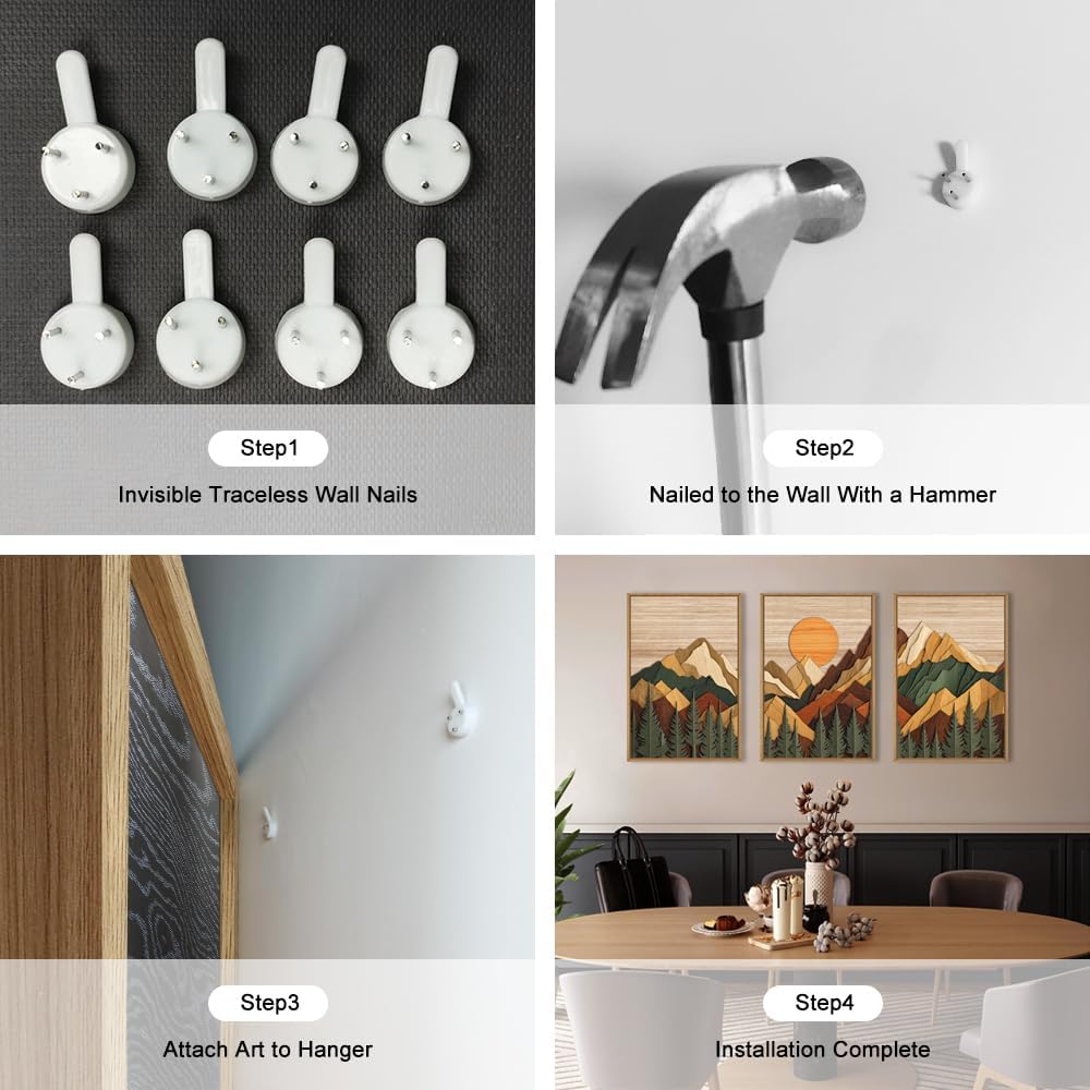 - 【Wooden Mountain Wall Art Set】This wooden mountain framed canvas wall art set executed in a charming nature style, captures mountains and trees, evoking an poetic atmosphere. Its modern organic aesthetic is reminiscent of nature charm. Utilizing this artwork as part of your decor will make your room full of poetry (Not-3D Effect).