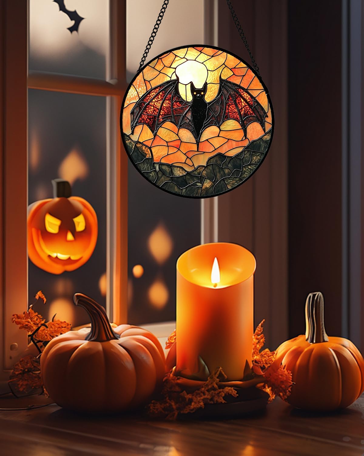 Stained Glass Window Hanging, Black Bat Sun Catcher for Door Home Decor Animal Suncatcher Christmas Mother's Day Birthday Gifts for Women Men Mom and Nana 6.3 in