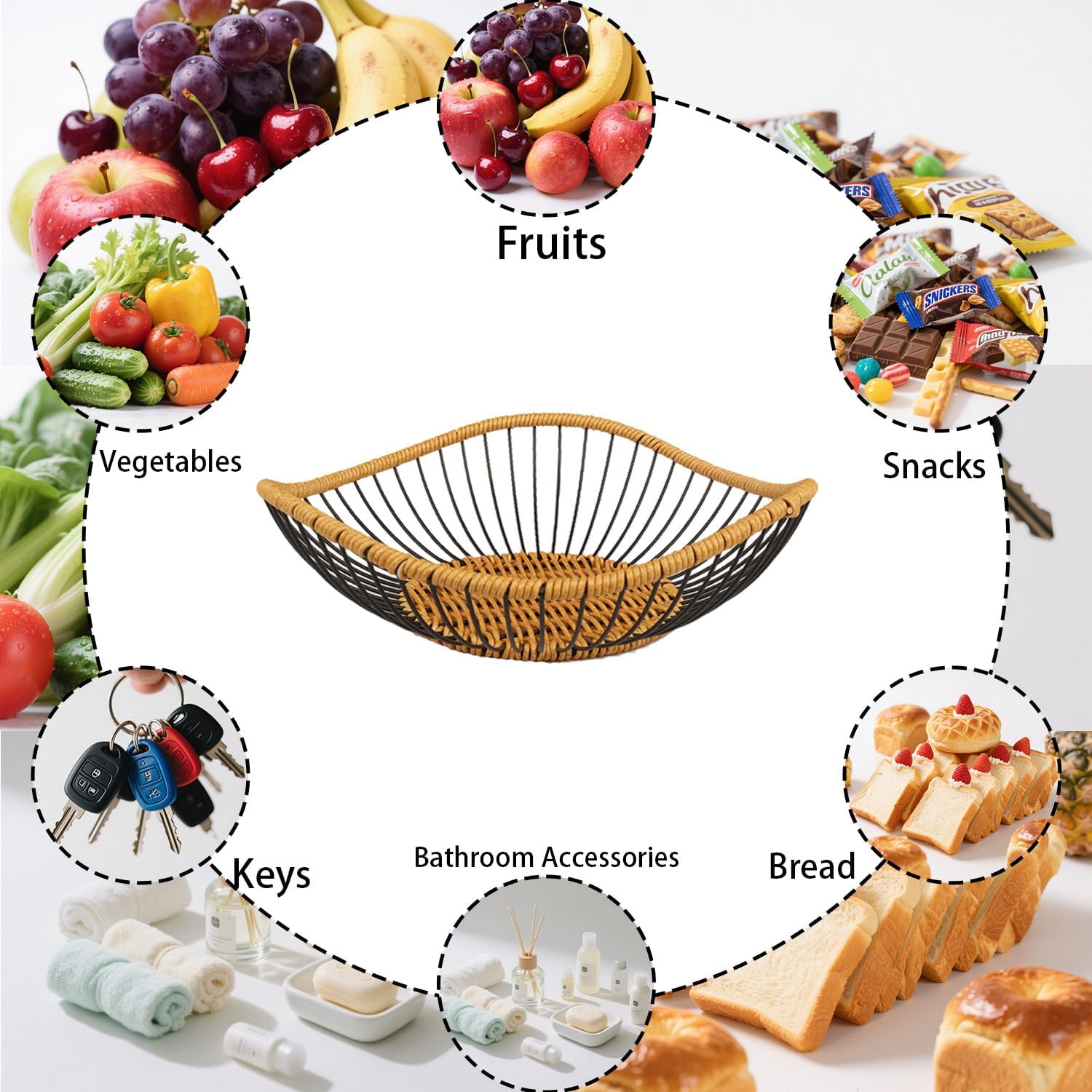 - Perfect for Any Room or Occasion - Whether used in your kitchen, bathroom, or living room, this multi-purpose metal wire fruit basket is perfect for holding fruits, snacks, candy, or toiletries. The basket for fruit mesh fruit basket large fruit bowl chic design makes it a great addition to your home, office, or event. Organize your space with this functional and decorative piece today