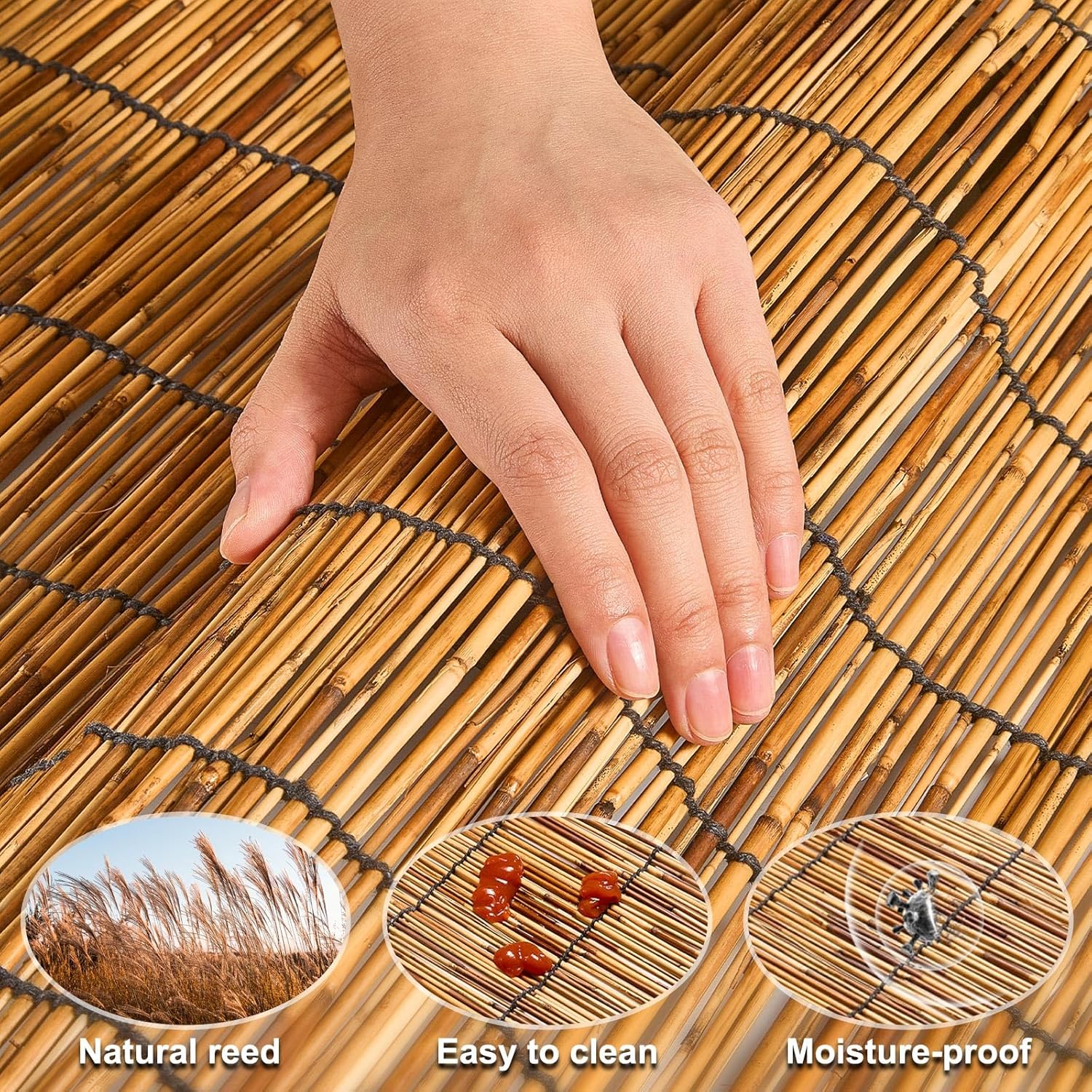 - Pure Natural Reeds:Our premium reed screen are all hand made,using the high quality reed from the monsoon climate of medium latitudes,these reed fencing are made from carbonized reeds,which are stronger and safer than plastic reeds,Each one is clean, strong and straight,The reed fence are naturally water resistant and will last for years.