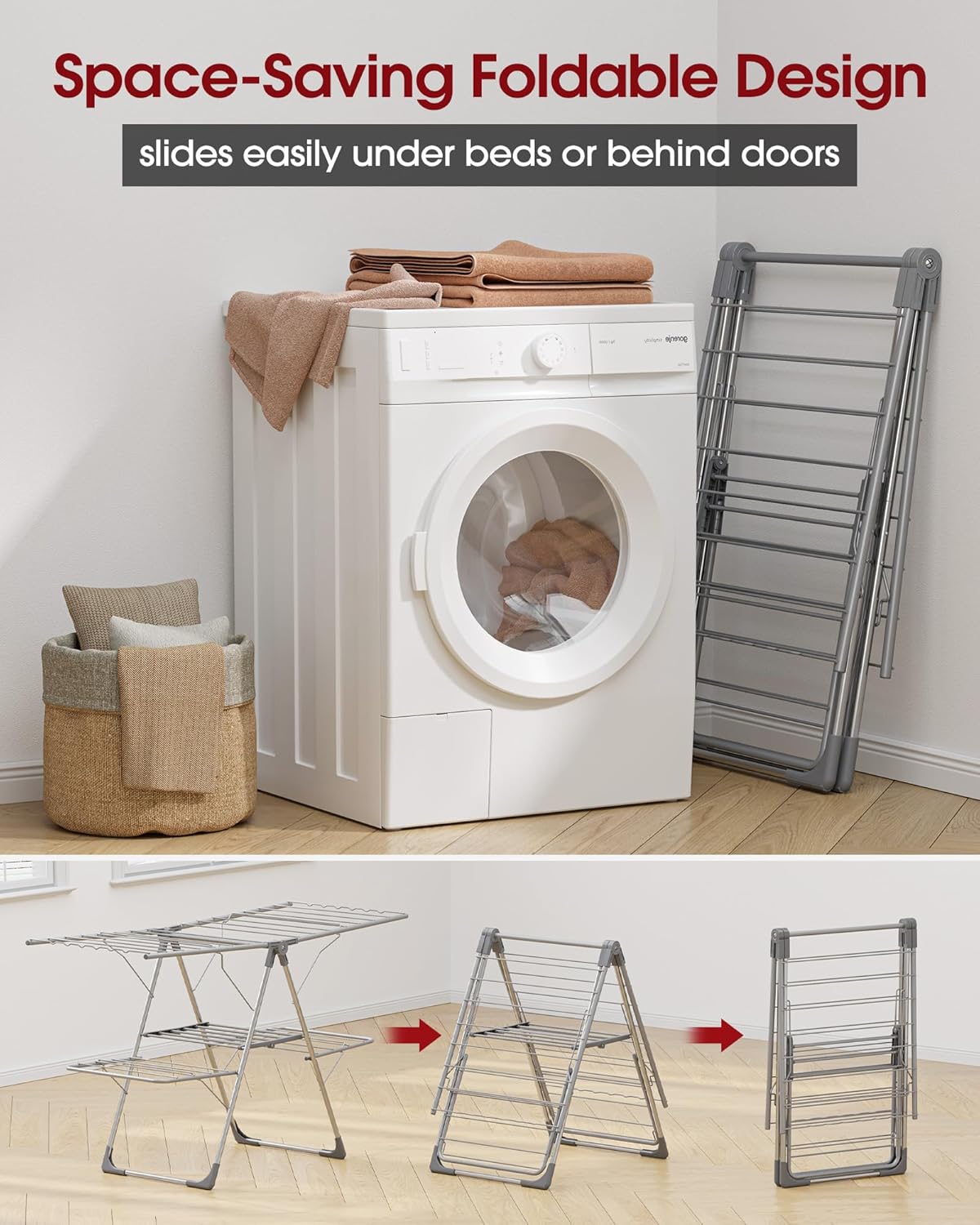 - ALL-WEATHER DRYING: Made for both indoor and outdoor use, this folding clothes drying rack provides year-round flexibility. Its portable design lets you dry laundry inside on rainy days or take it outside for fresh-air drying. No matter where you are, this clothing drying rack easily adjusts to your laundry routine.