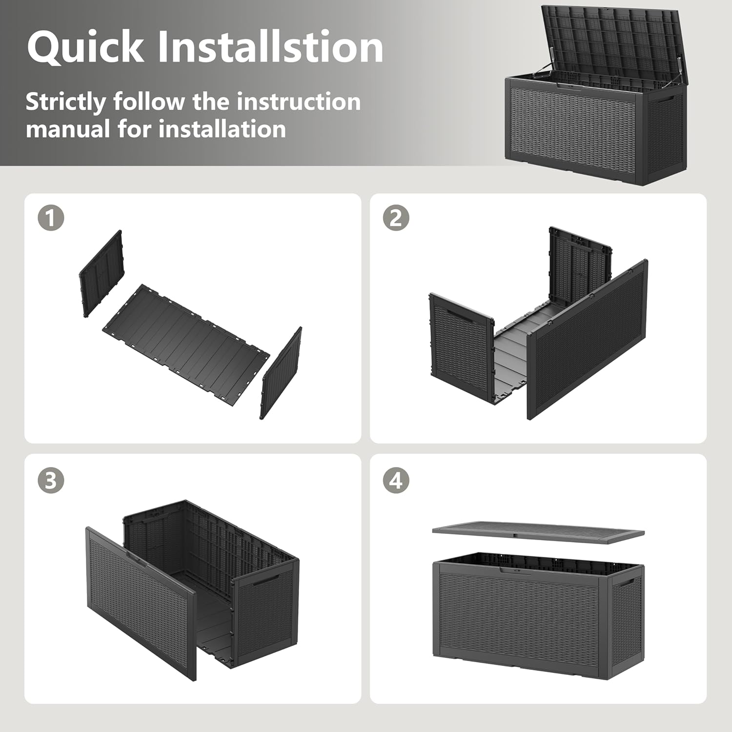 - Deck Boxes Outdoor Waterproof: Designed as a waterproof storage solution, this deck box protects your belongings from moisture and ensures they stay dry even during heavy rain. The lockable lid adds an extra layer of security, keeping your valuables safe from theft or damage.