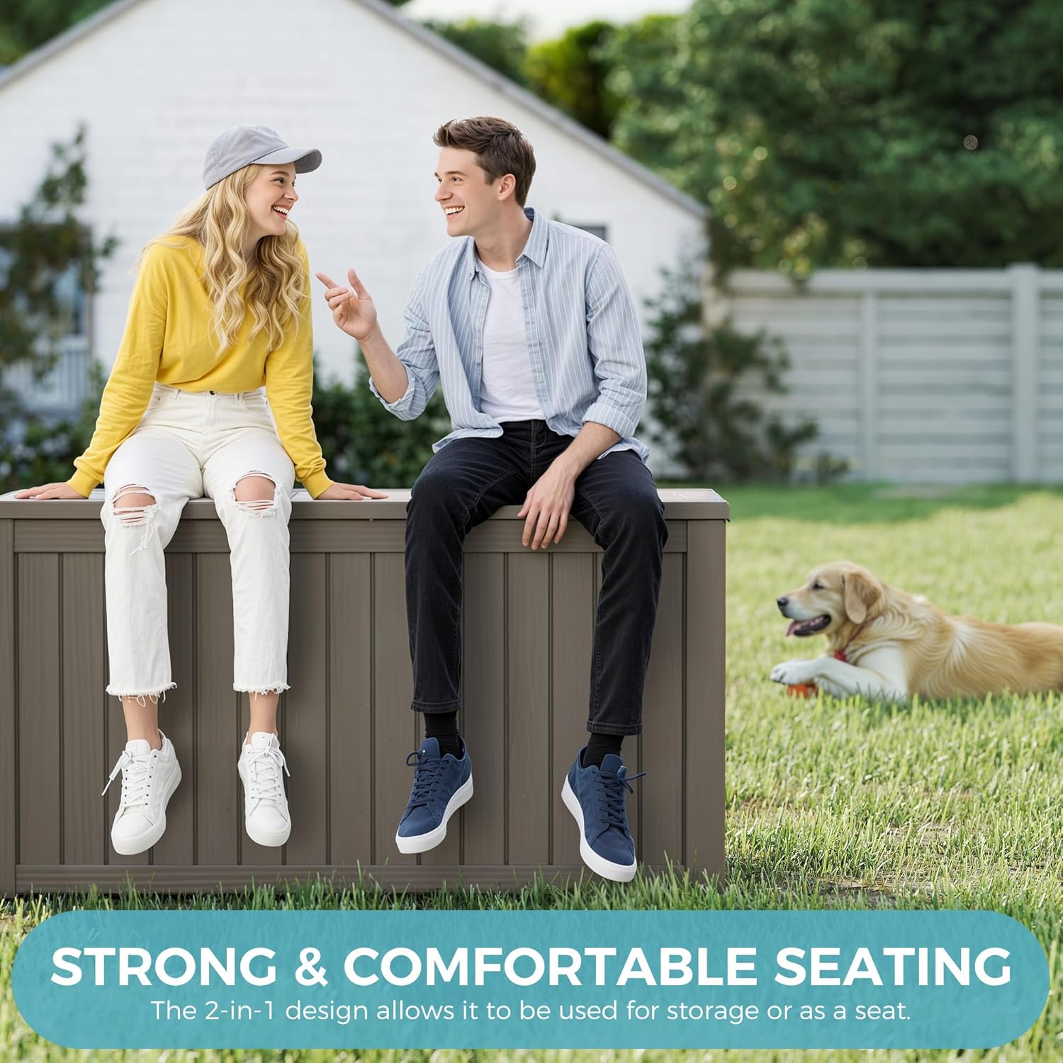 - Upgraded structural design: Made with weather-resistant and waterproof resin, this 150-gallon deck box is designed to withstand the elements and prevent rust, peeling, and denting. Dividers can be used to separate compartments for sorting or can be removed to add additional storage space.