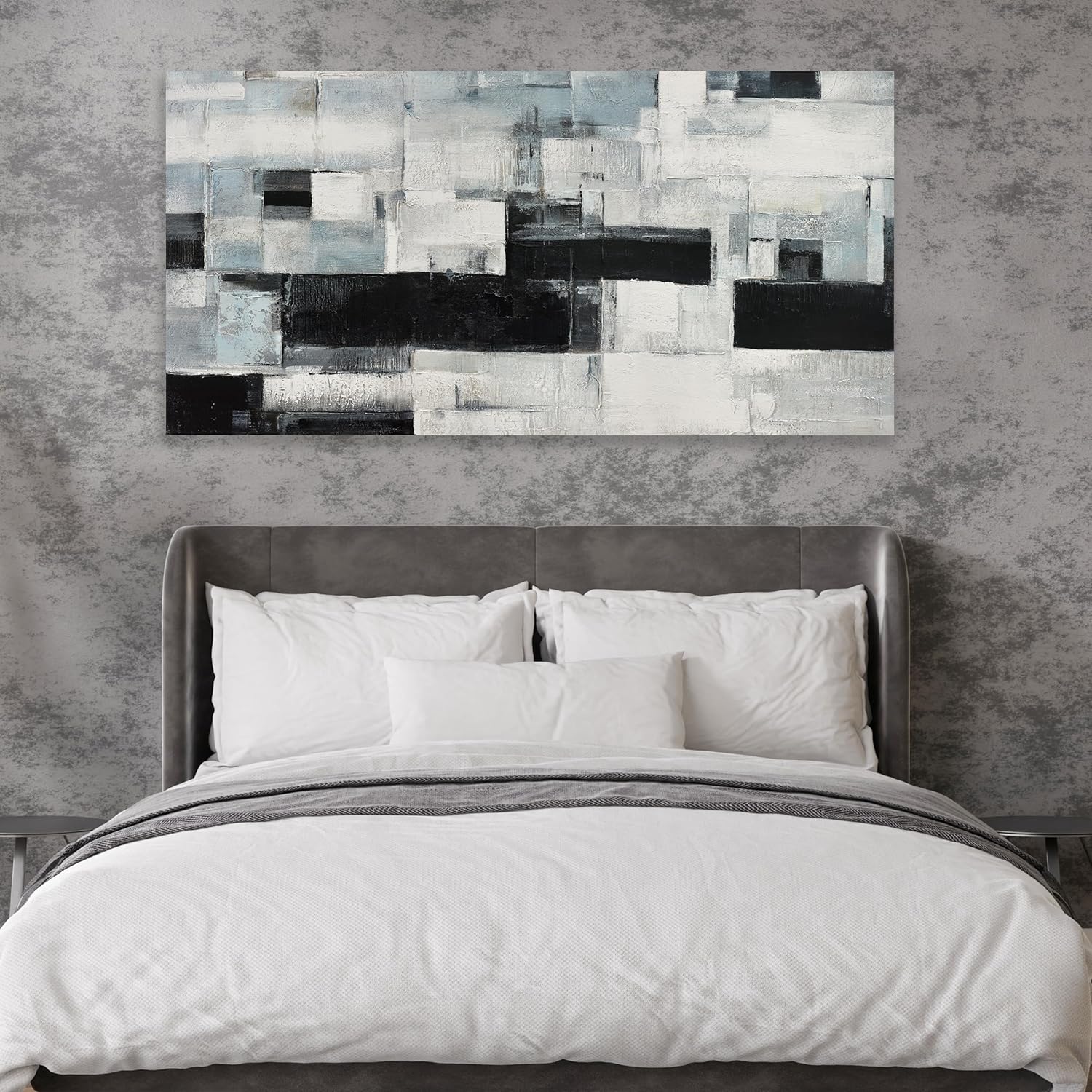 Glvzygy Abstract Wall Art Room Decor Black White and Gray Plaid Minimalism Picture Abstract Art Wall Decor Modern Abstract Wall Art Canvas for Living Room Bedroom Office 29"x58"