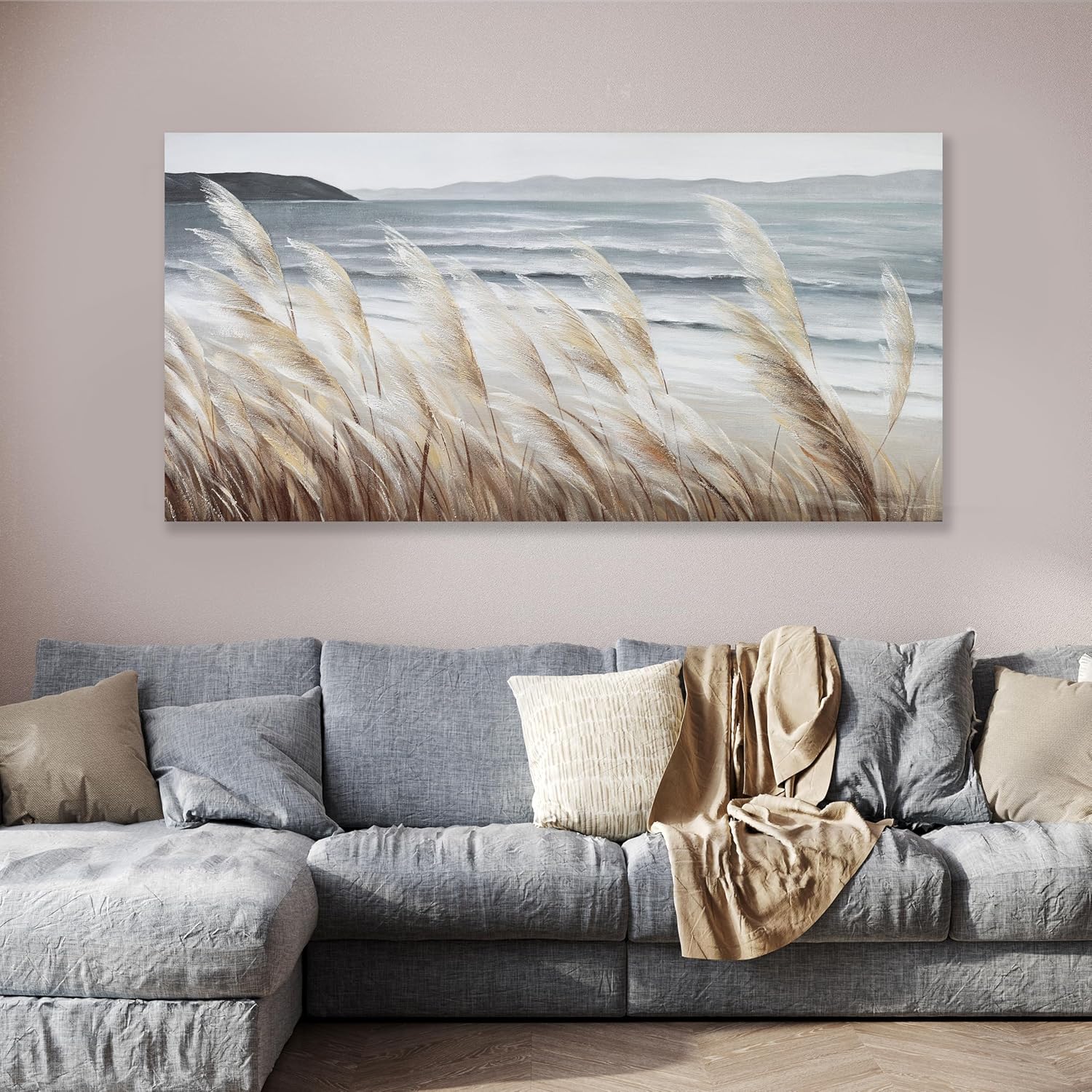 Plant Wall Art Nature Wall Art Reed Seascape Canvas Painting Wall Decor Framed Artwork for Bedroom Living Room Decoration Home Kitchen Office 29"x58"