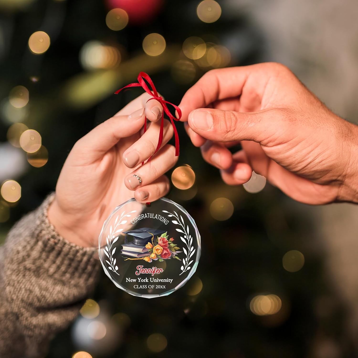 - Graduation Decor: Comes with a red ribbon, this beautiful personalized graduation glass ornament can be hung in any prominent place, desk, office, wall of honor, Christmas tree, doors, windows, walls and anywhere you want to decorate
